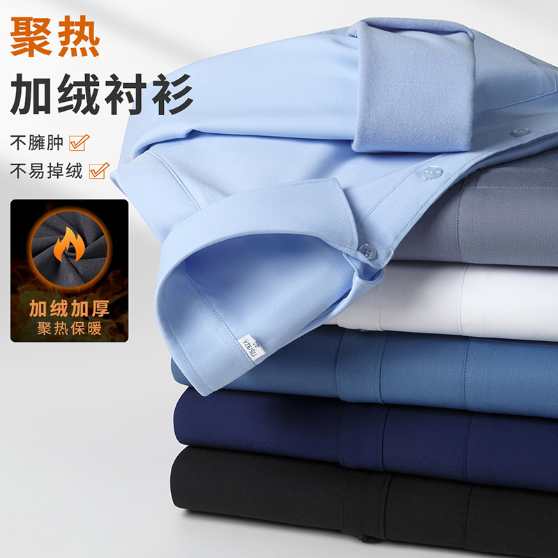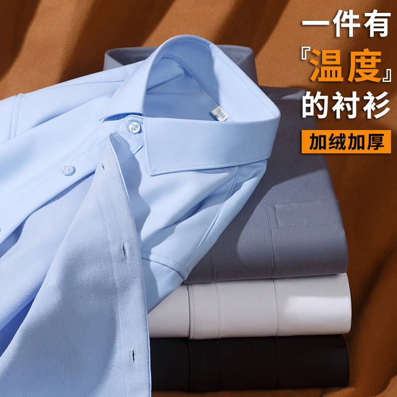 恒源祥长袖衬衫高档男新款商务正装休闲免烫加绒口袋衬衣职业正装