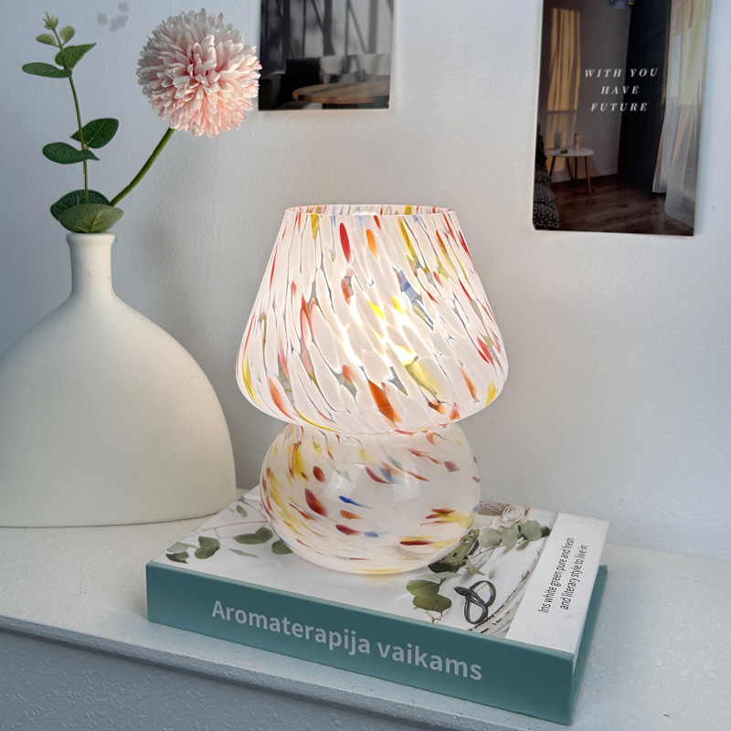 跨境美式复古装饰台灯花点玻璃蘑菇灯USB床头氛围灯可调光USB调光