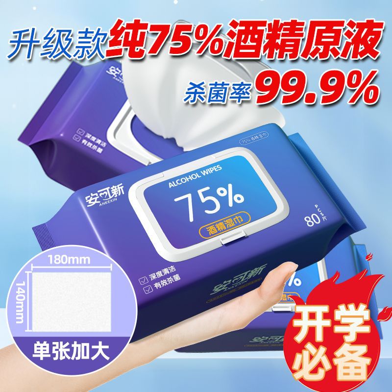 安可新75%酒精湿巾一次性消毒湿纸巾消毒杀菌擦手机成人学生家用