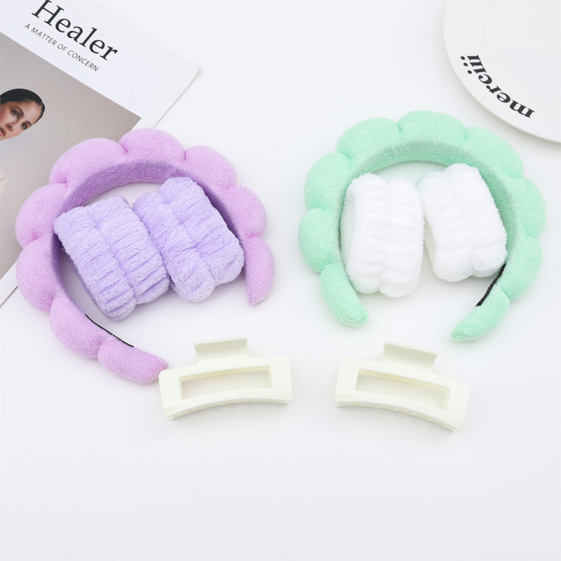 头箍高颅顶云朵海绵发箍发夹手腕带发饰套装洗脸布艺网红款四件套