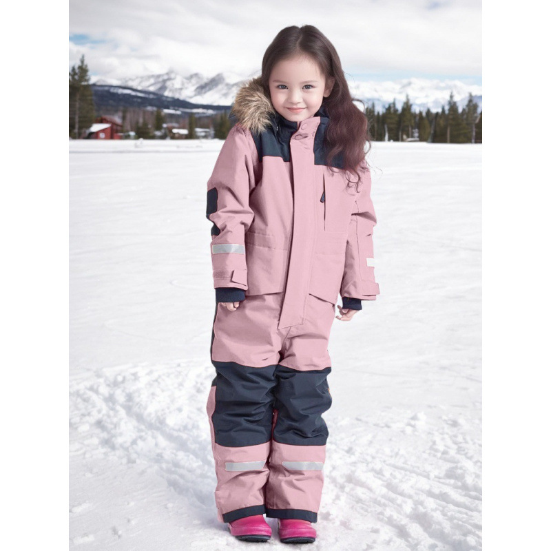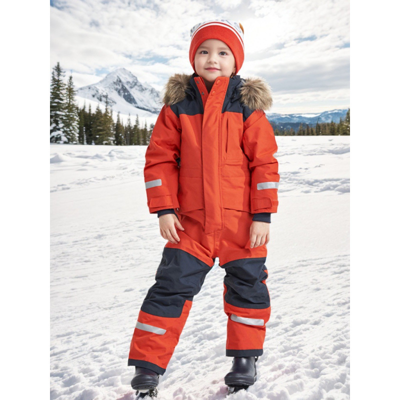 现货热卖厂家直销户外单双板夜光防风防水加厚保暖连体儿童滑雪服