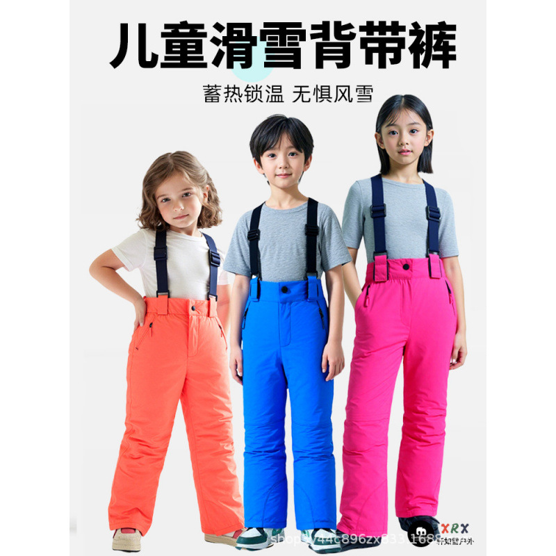 新款儿童长裤防水男童女童户外速干冬季批发滑雪防风滑雪背带裤