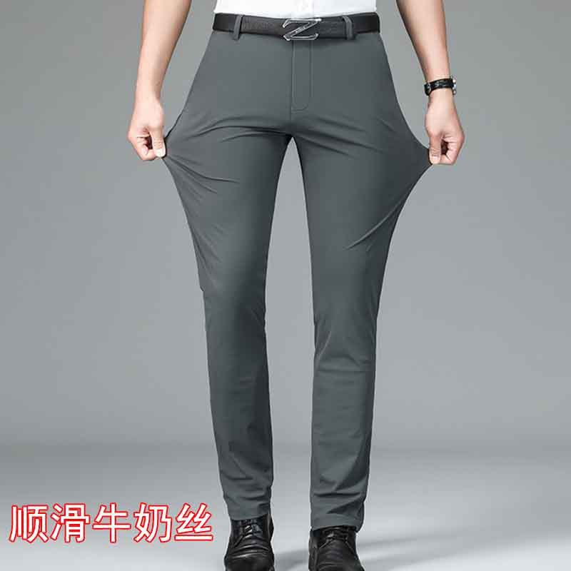 牛奶丝高弹锦纶春秋厚款男士休闲裤直筒宽松商务西裤