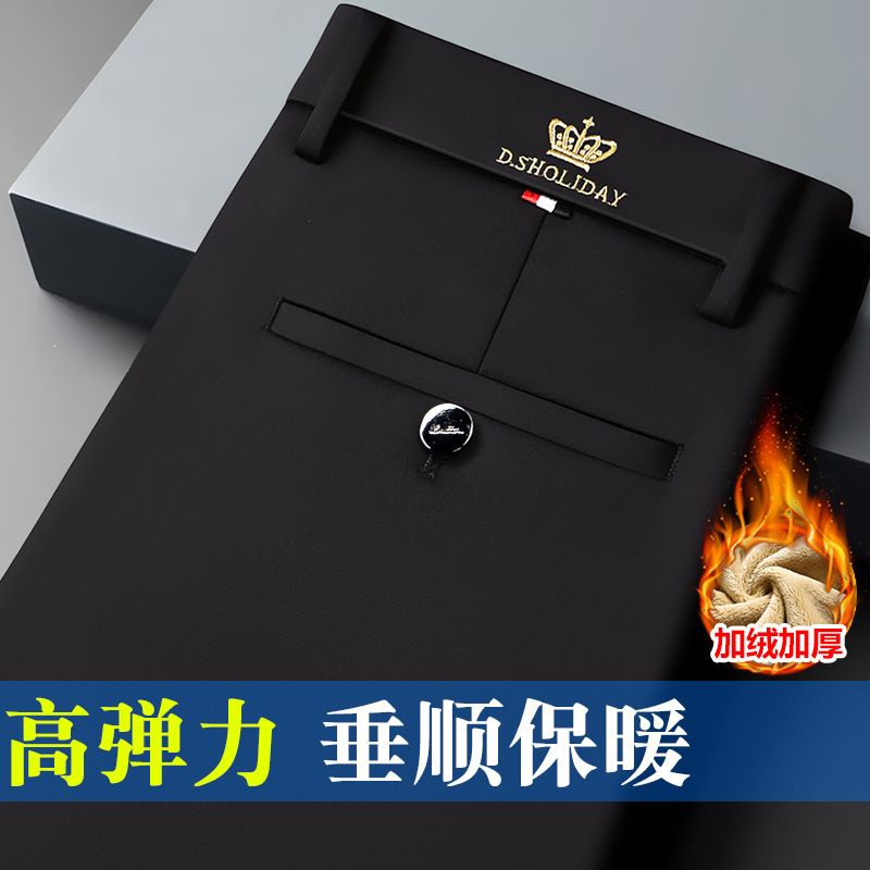 跨境爆款秋冬新款加绒加厚西裤男士休闲长裤子男四面