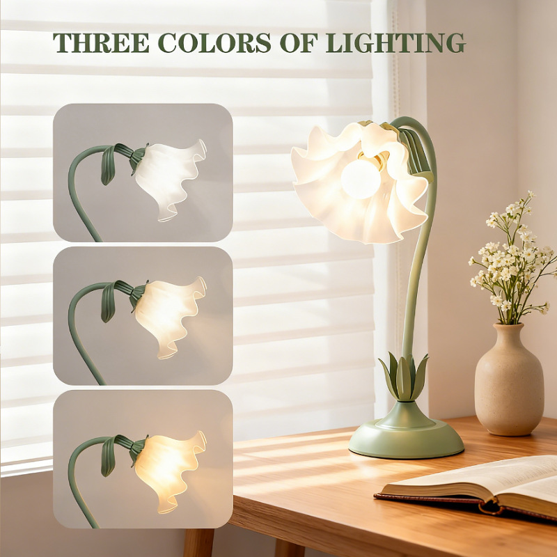 跨境爆款田园花朵浪漫卧室床头小夜灯公主房书桌装饰灯氛围台灯