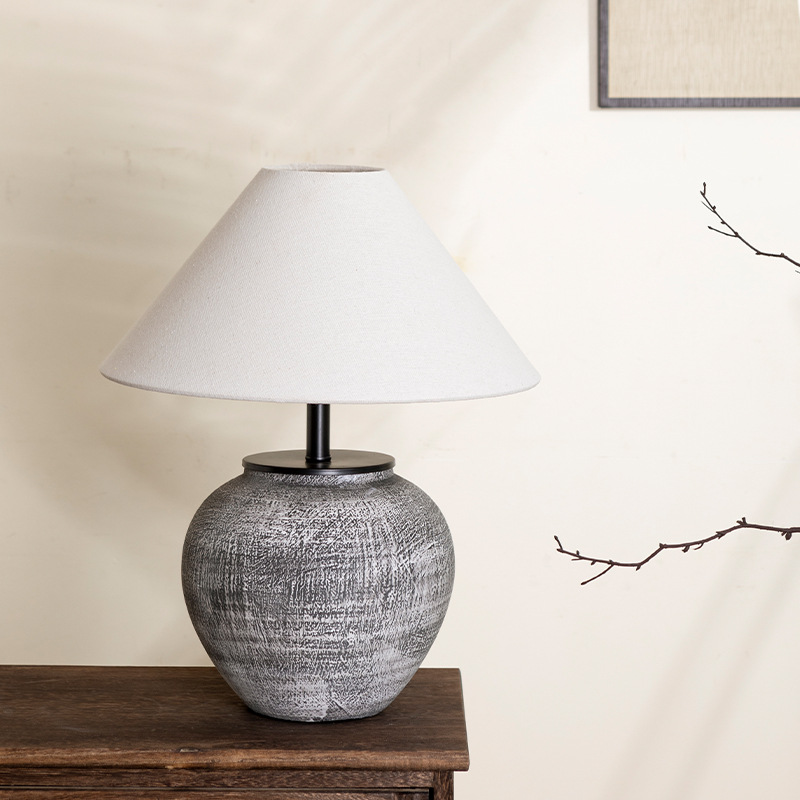 侘寂风土陶台灯中式粗陶瓷客厅酒店民宿设计师卧室床头灯led灯
