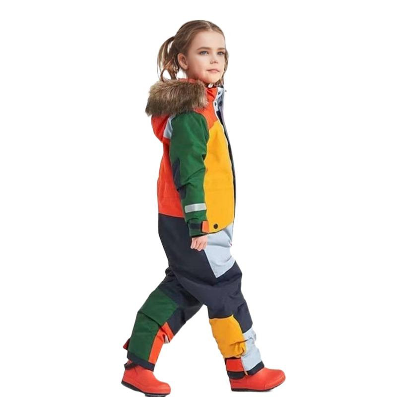 现货热卖厂家直销户外单双板夜光防风防水加厚保暖连体儿童滑雪服