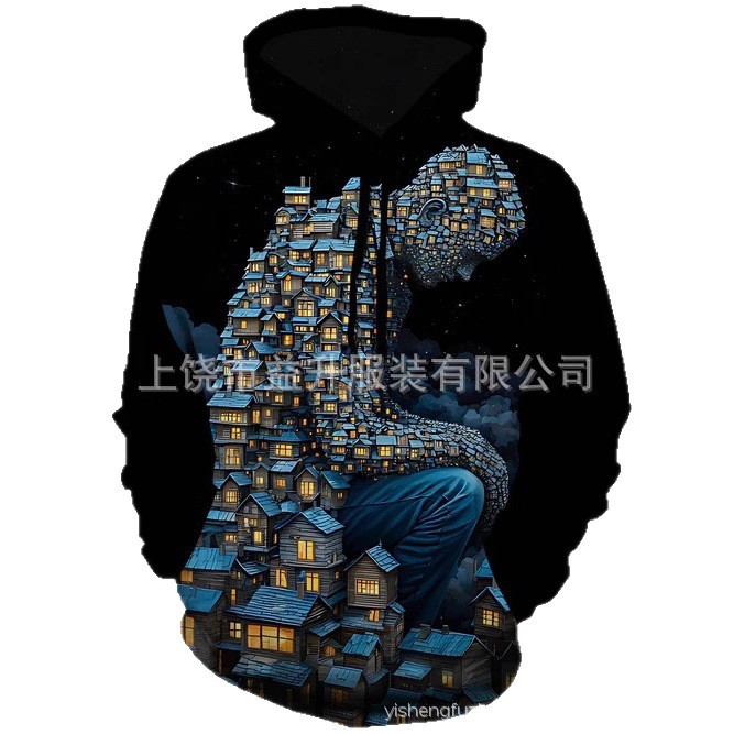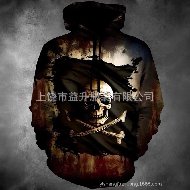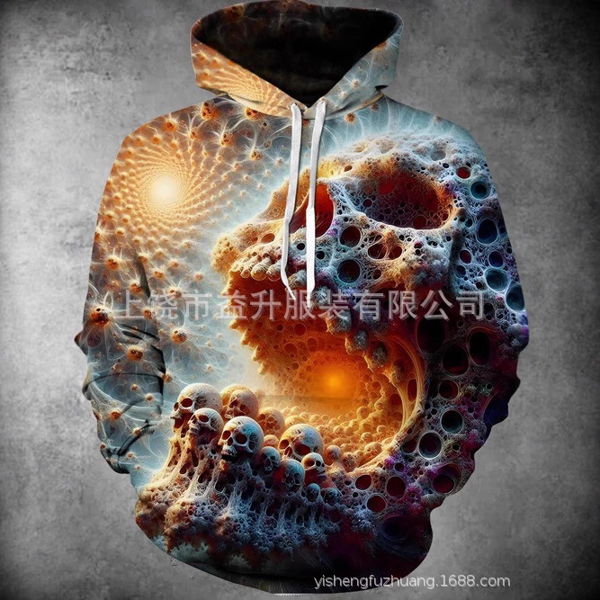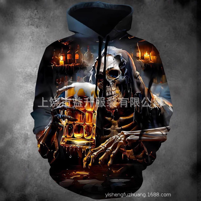 2023跨境男装数码印花新款万圣系列青年潮流男士休闲运动连帽卫衣