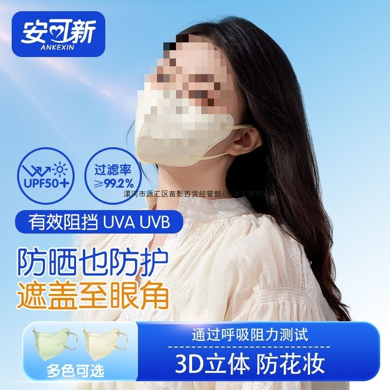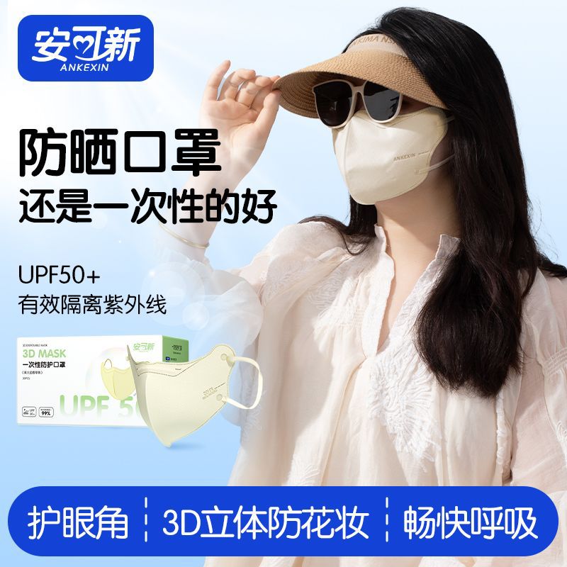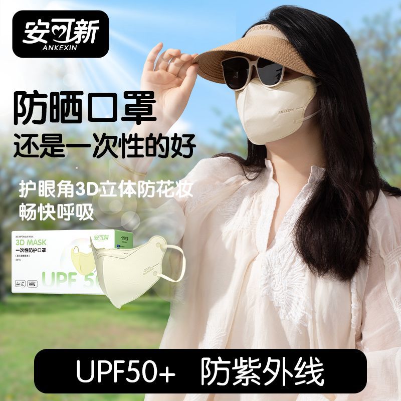 安可新防晒口罩3D立体女防紫外线护眼角UPF50+透气一次性独立口罩