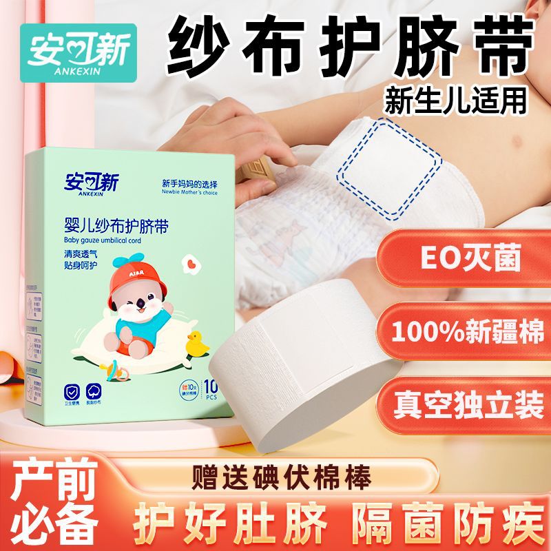 安可新婴儿护脐带新生儿宝宝护肚子一次性纯棉纱布薄款出行用品