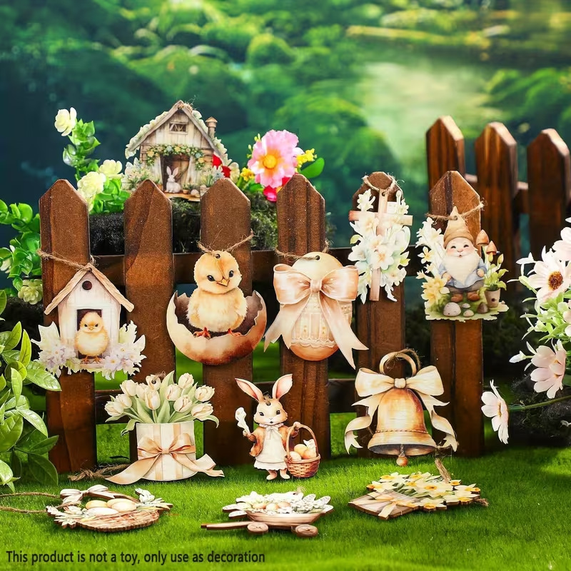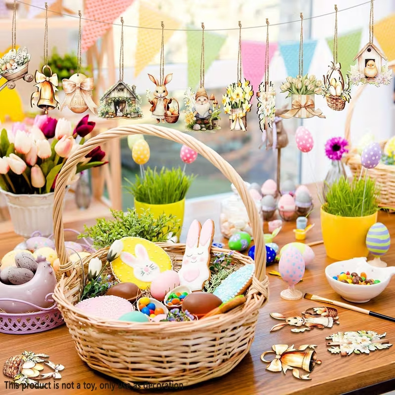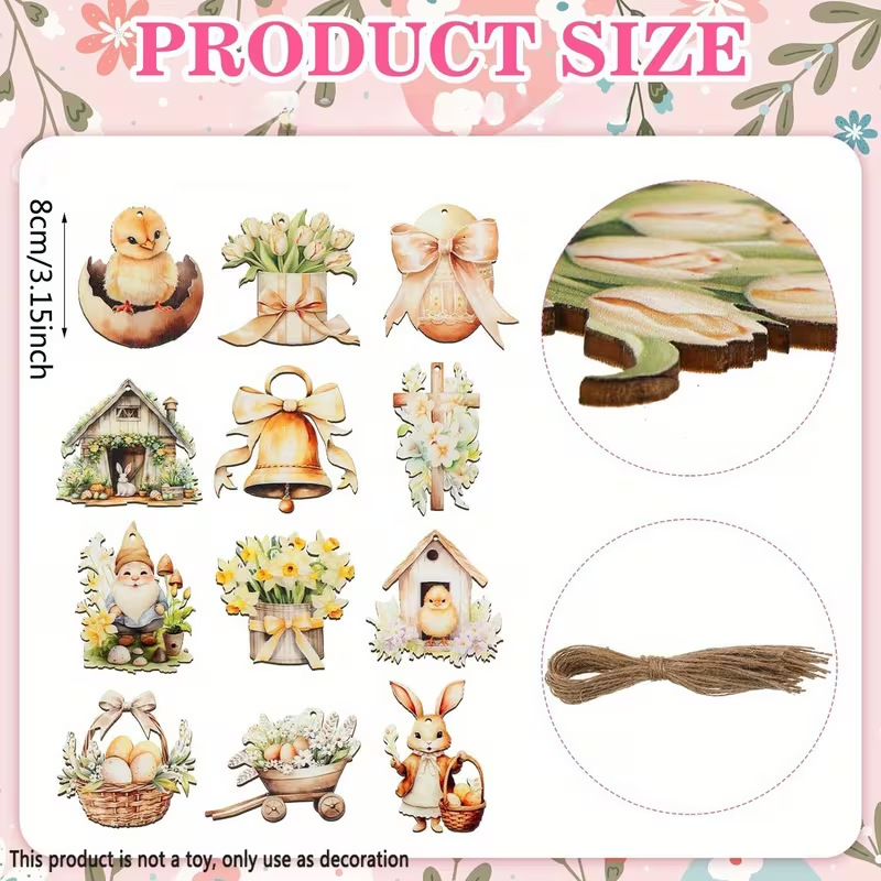 跨境新品复活节木质装饰挂件春季创意花卉兔子复活节装饰挂件