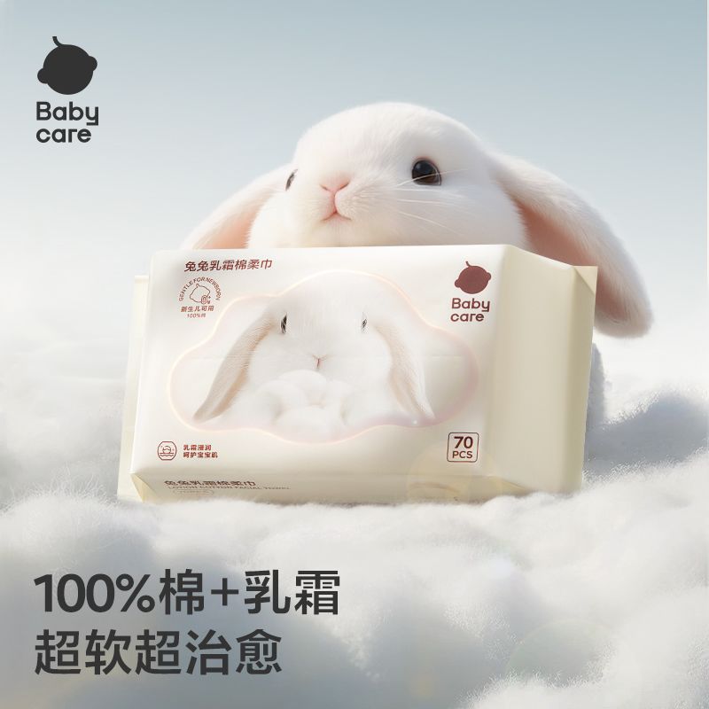 babycare兔兔乳霜纯棉柔巾干湿两用纯棉婴幼儿童一次性洗脸巾