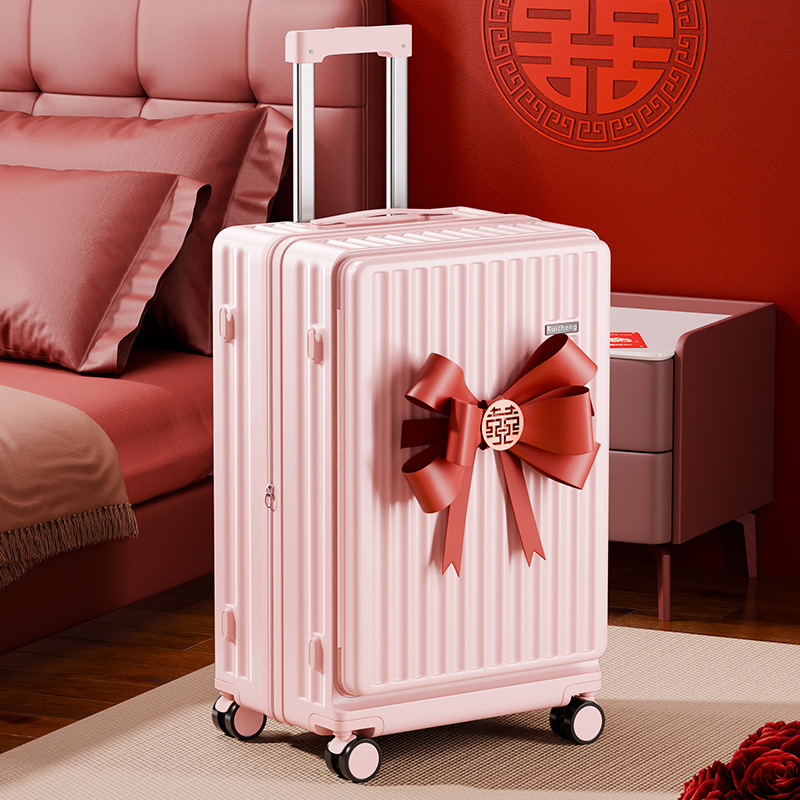 婚礼大红前开口行李箱女陪嫁箱20寸嫁妆箱大容量24寸红色行李箱