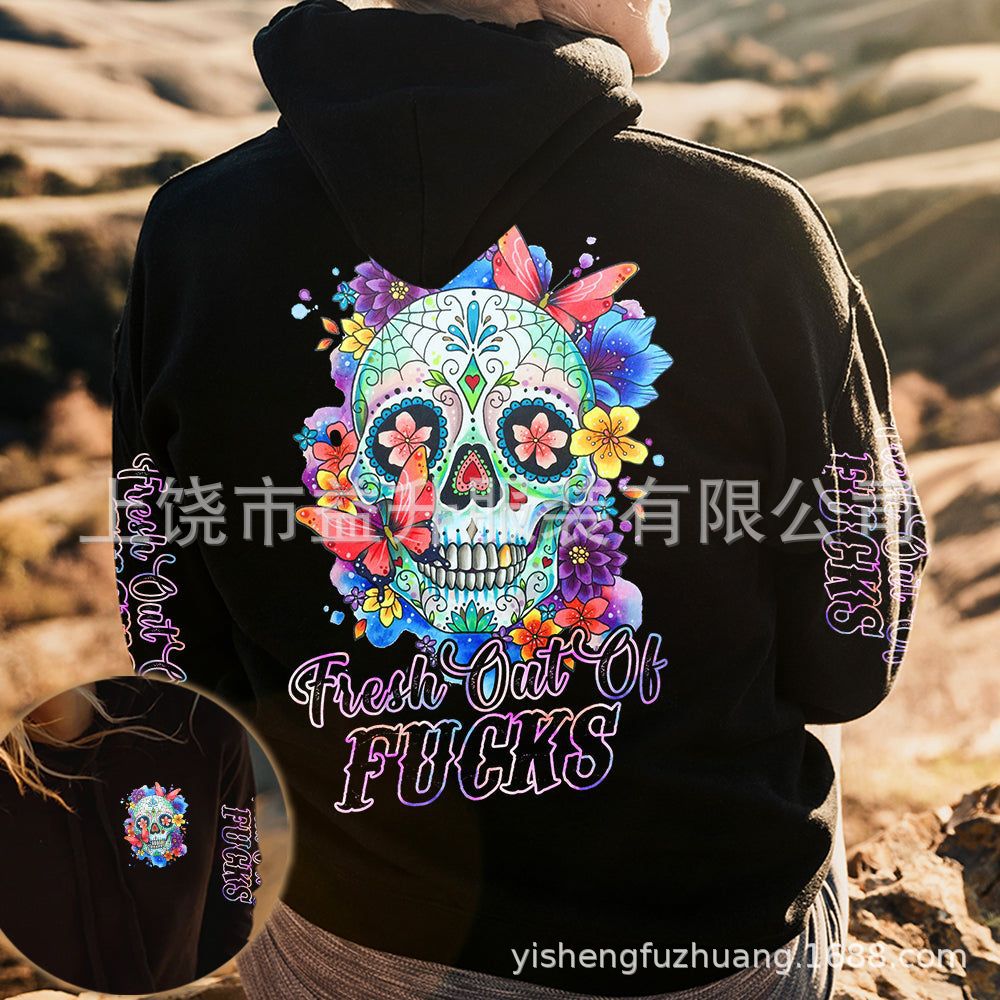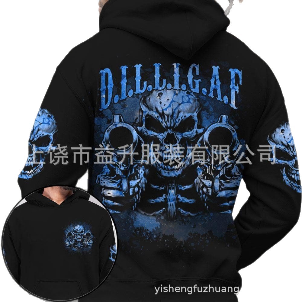 2025秋季新款骷髅3D数码印花亚马逊男士时尚休闲欧美外贸跨境卫衣