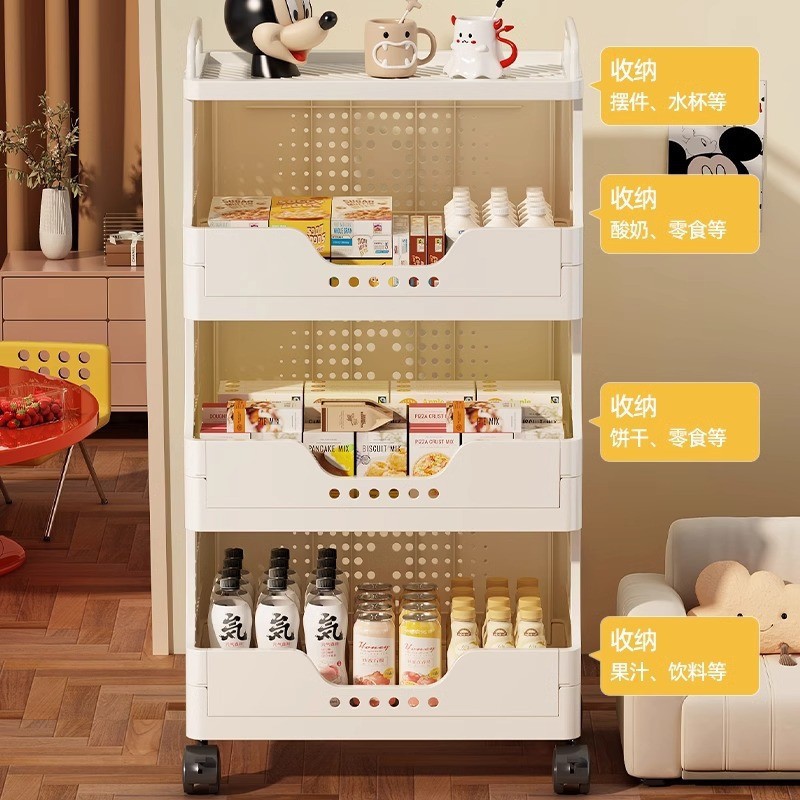 加厚落地小推车零食置物架多层收纳架客厅卧室大容量收纳整理移动