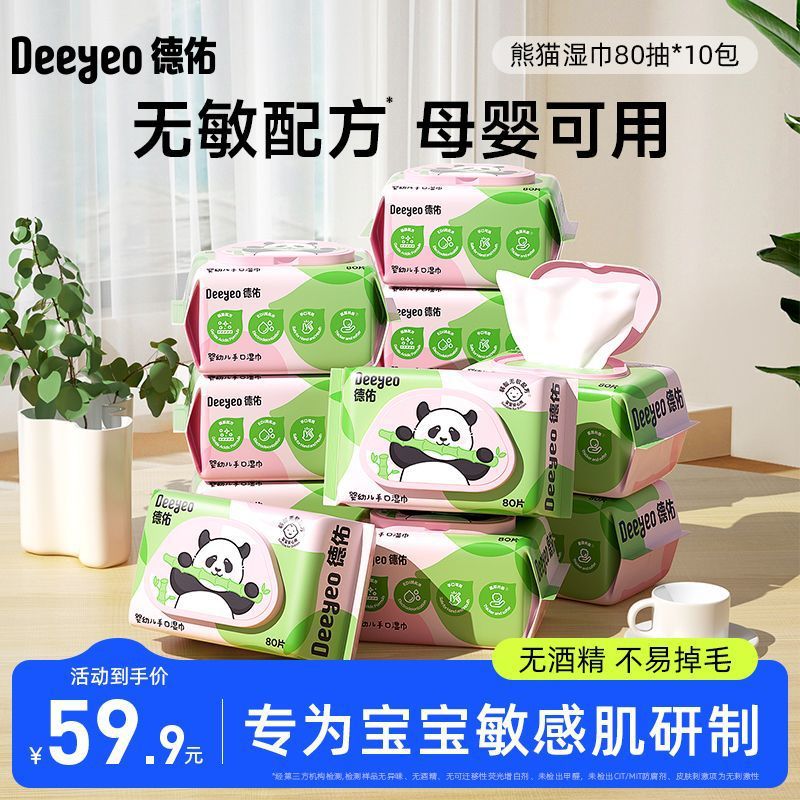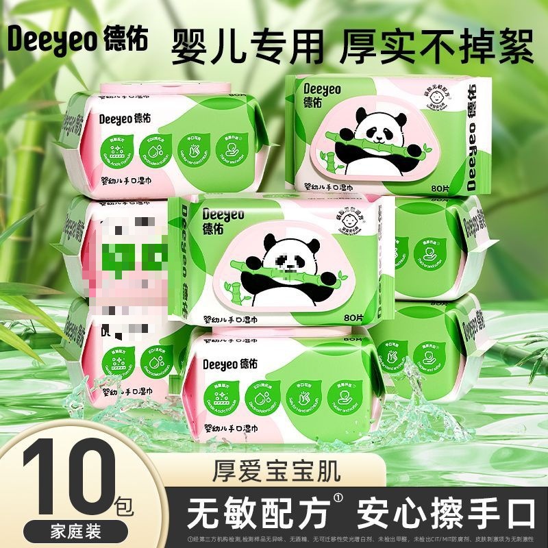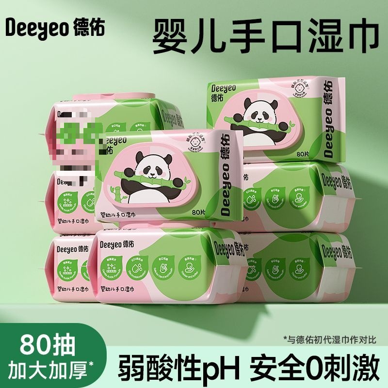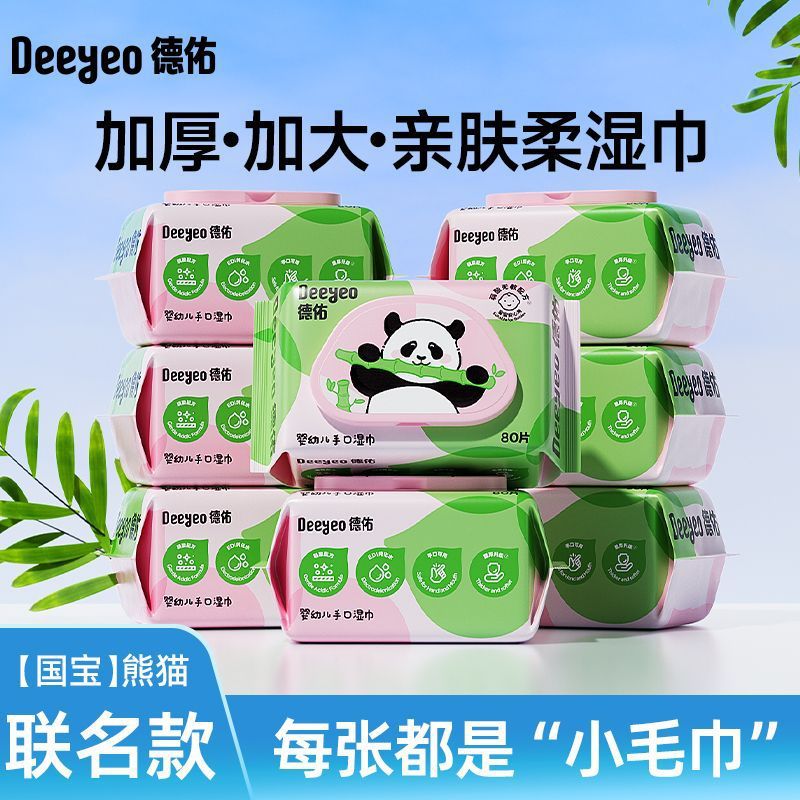 德佑婴幼儿手口湿巾婴儿学生宿舍用加厚大包80抽湿纸巾熊猫湿巾