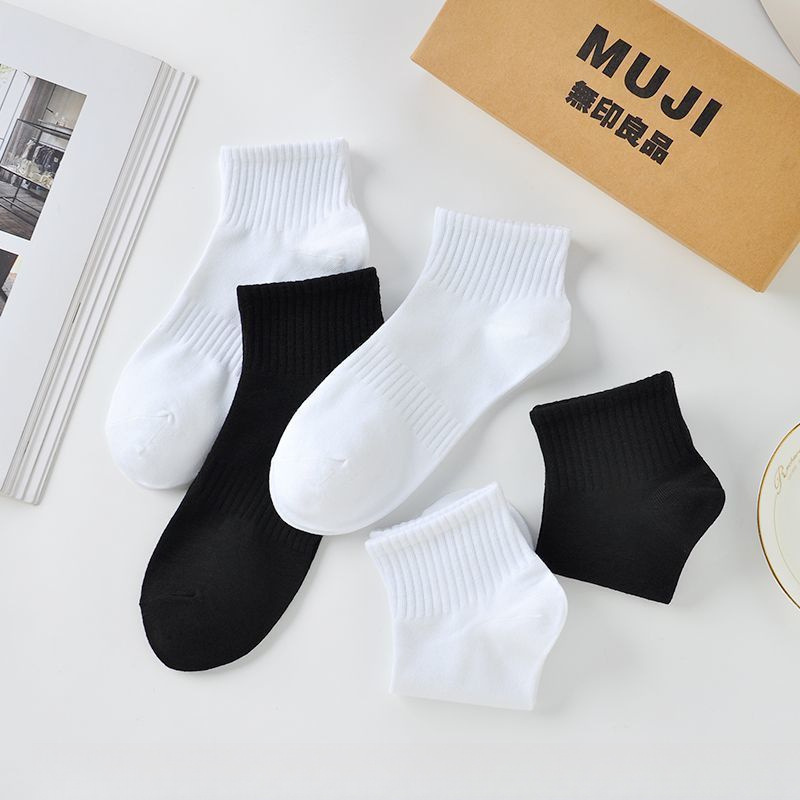无印良品袜子纯棉礼盒装长筒纯白防臭学生中筒吸汗运动袜量大优惠