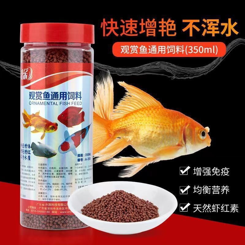 通用型鱼食小颗粒锦鲤招财饲料家养观赏金鱼虾红素增色鱼粮不浑水