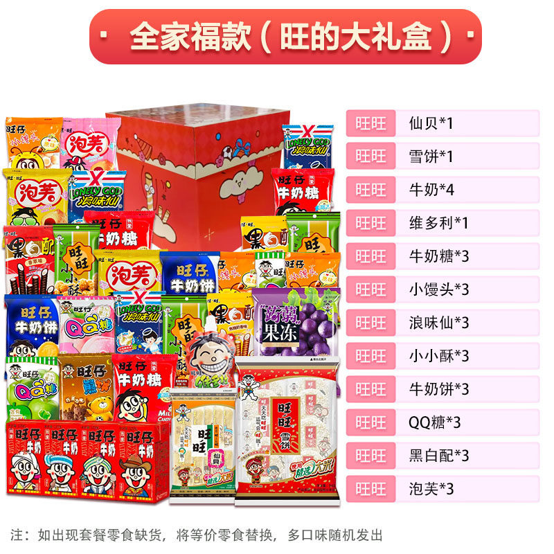 包装规格 | 旺旺超值款-官方旺旺礼盒 | | 包装规格 | 旺旺幸运款-官方旺旺礼盒-大包装 |