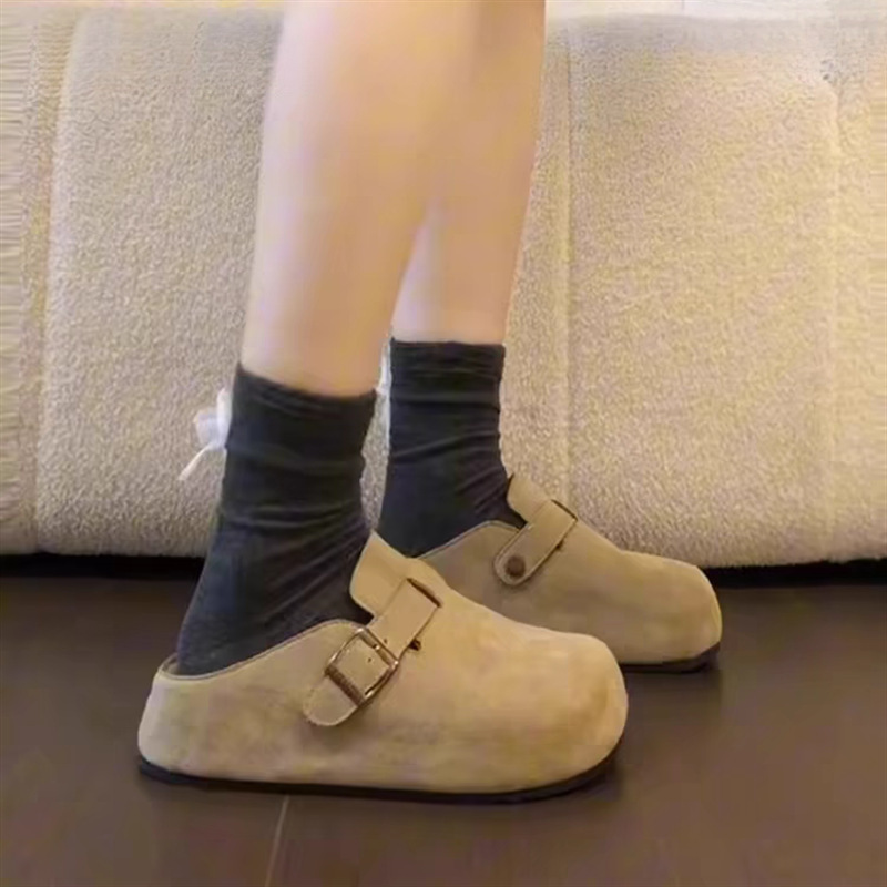 内增高5cm勃肯鞋女春季复古厚底一脚蹬外穿包头半拖鞋沙色黄色