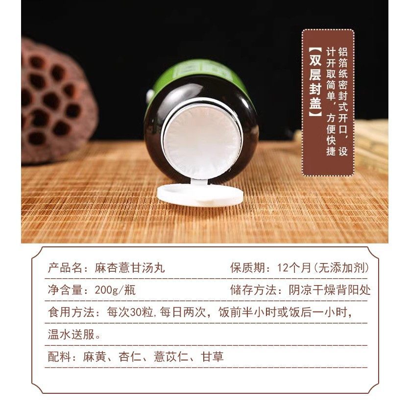 正品 麻杏薏甘汤丸精选原材料倪海厦推荐 一瓶200g