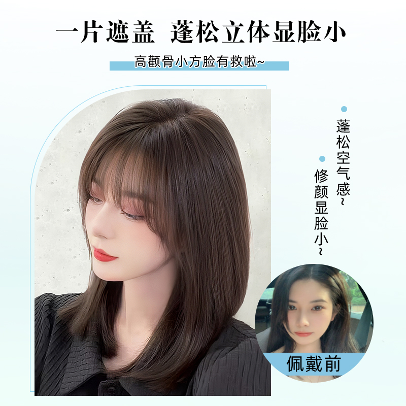 假发女片头顶增发量蓬松发遮白发真发高颅顶自然法式刘海假发片