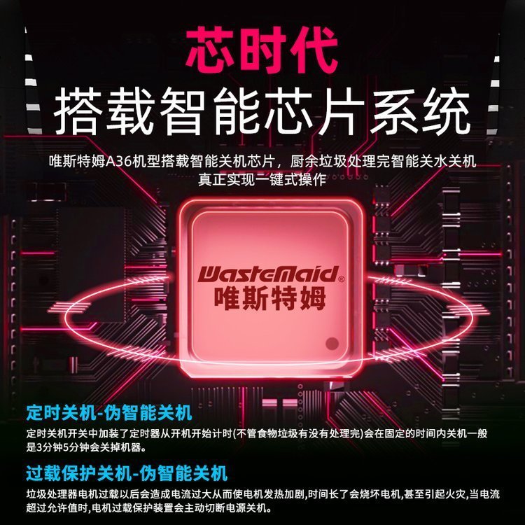 唯斯特姆A76厨房余家用残渣湿食物垃圾处理器餐搅破粉碎机下水道