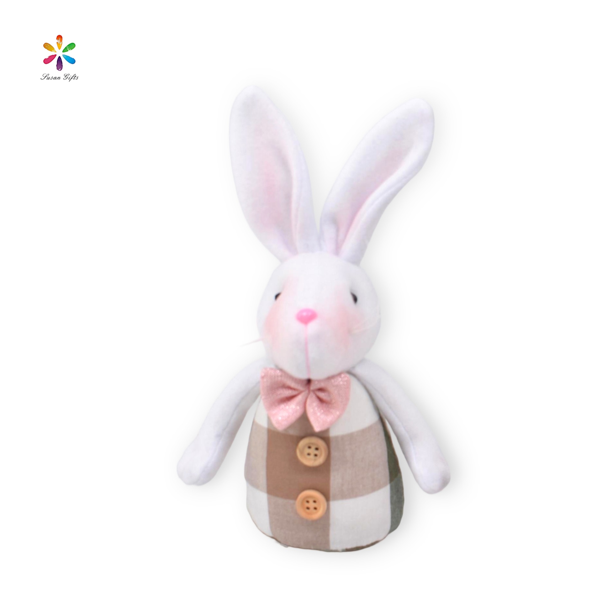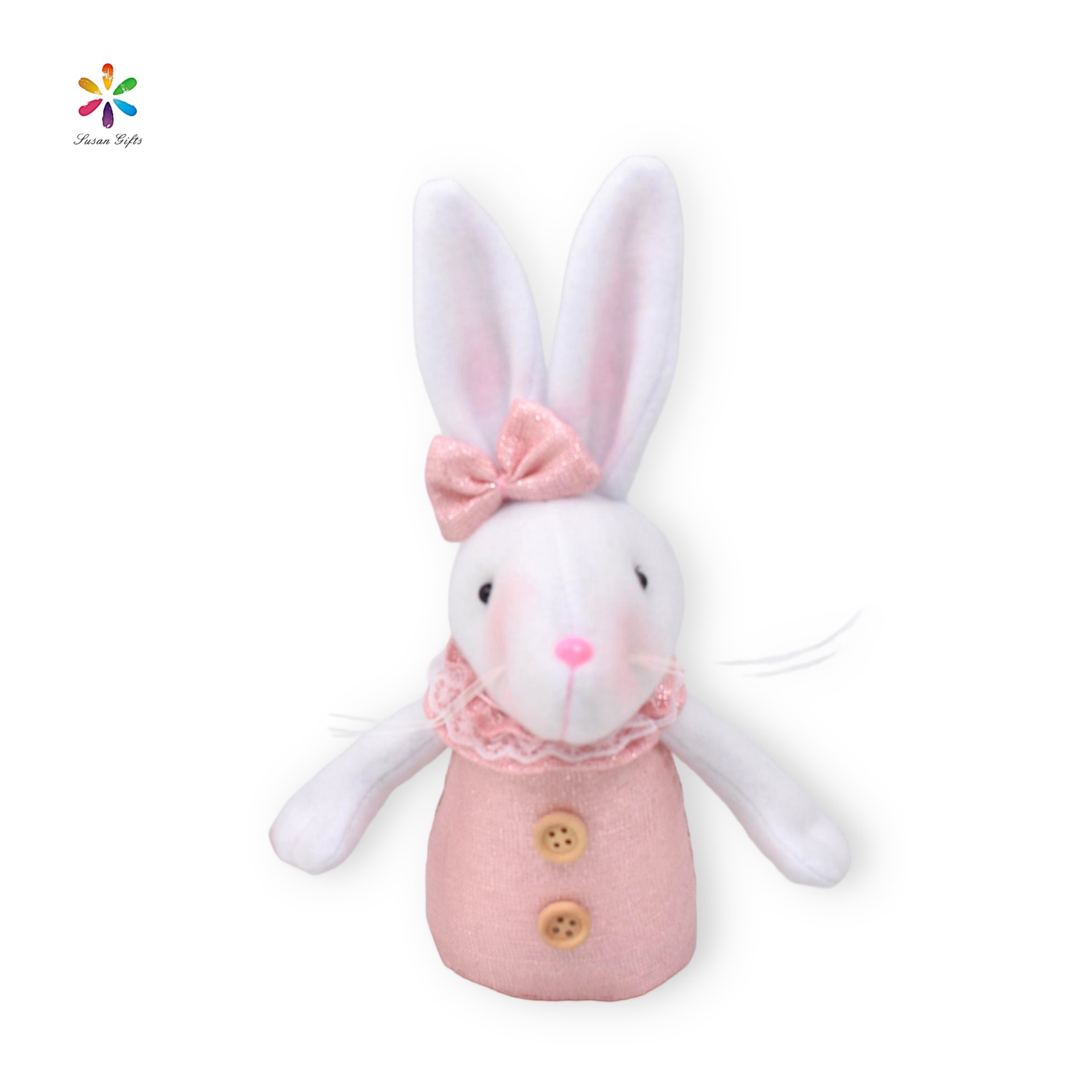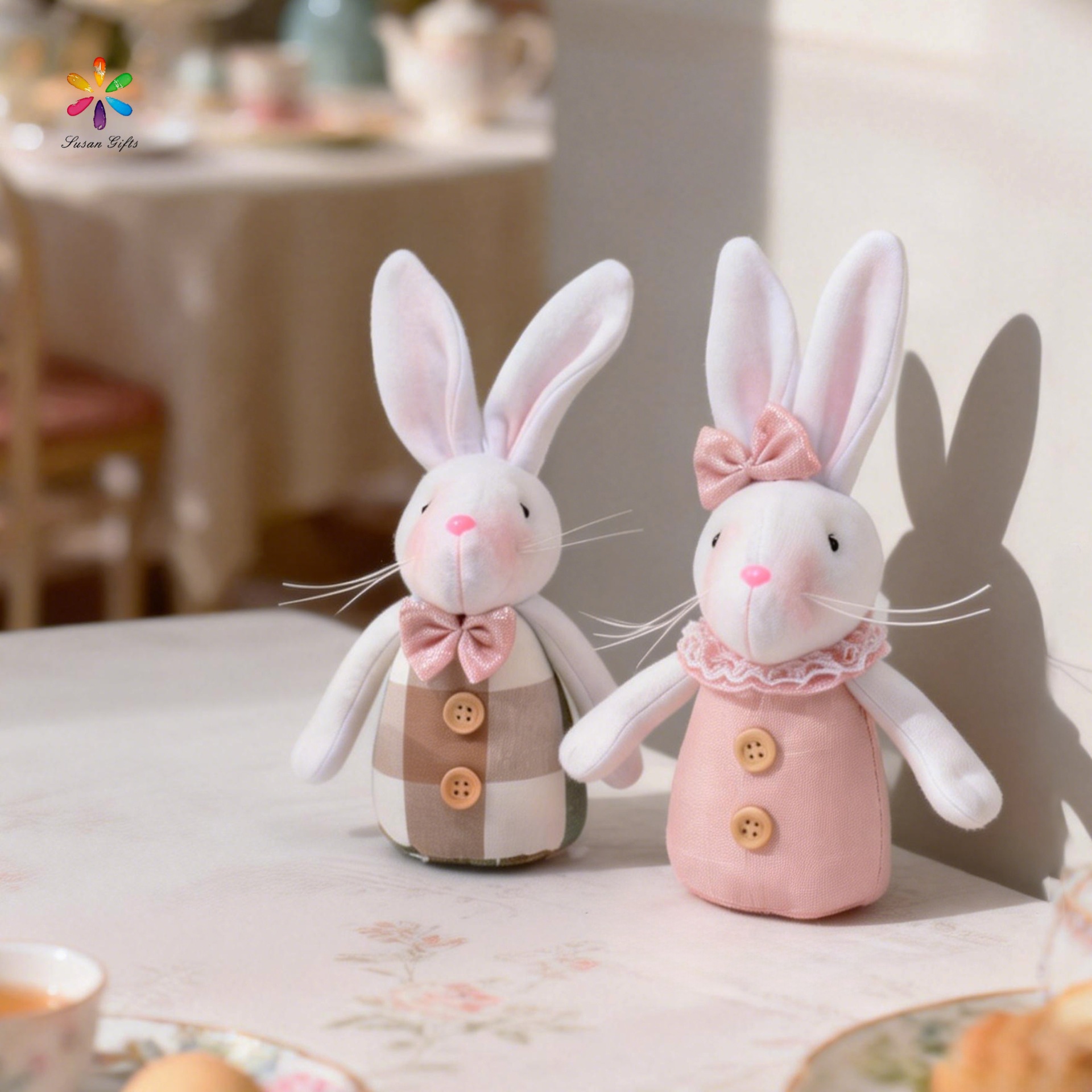 卡通可爱白色情侣粉彩蛋花朵兔子复活节家居摆件节日礼物站立