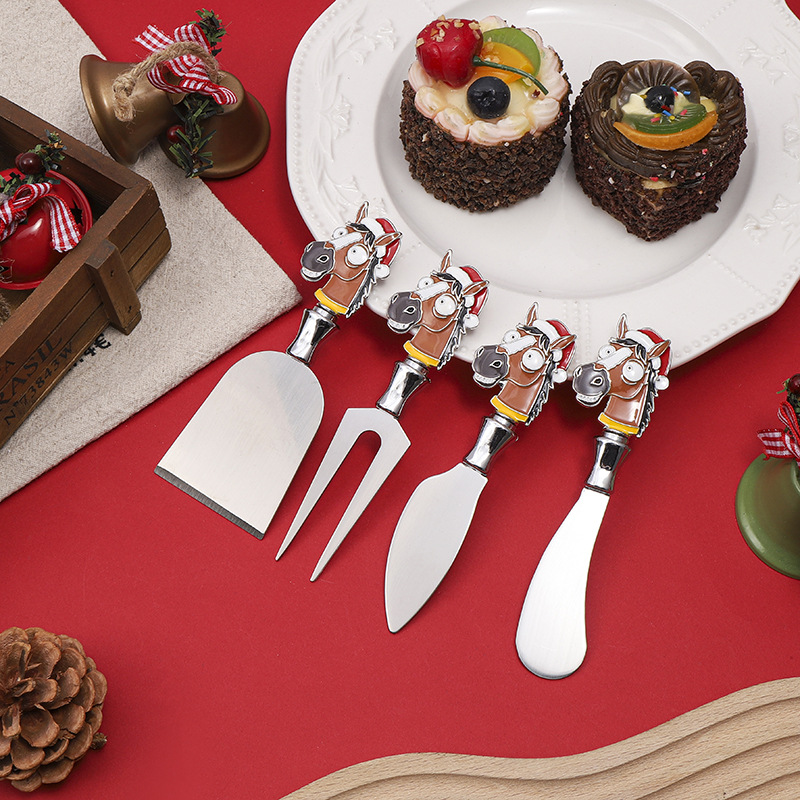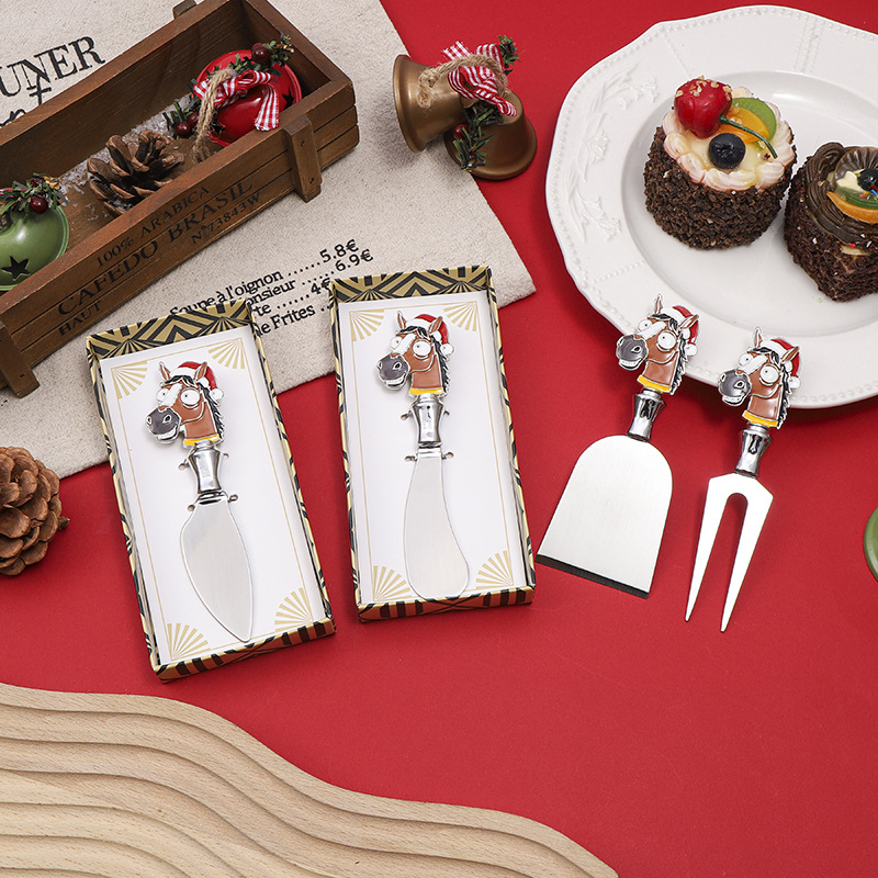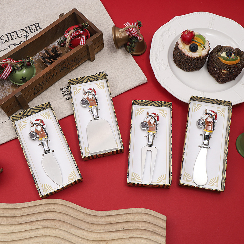 跨境马年奶油刮刀 奶酪抹刀披萨铲礼盒装不锈钢烘焙工具厂家批发