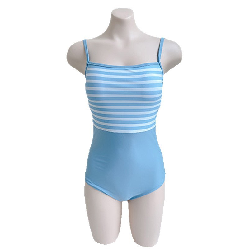 2026跨境韩版新款双肩小胸聚拢条纹显瘦高腰遮肚温泉连体三角泳衣