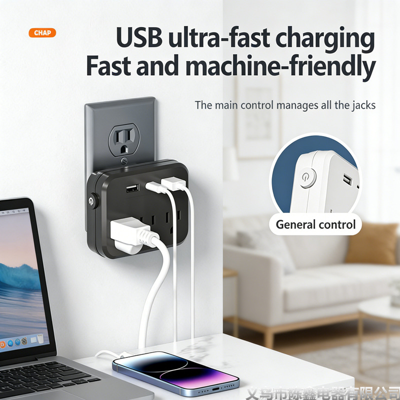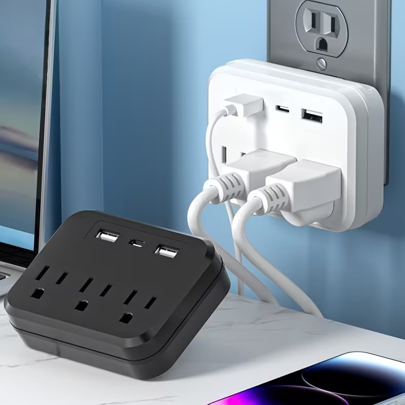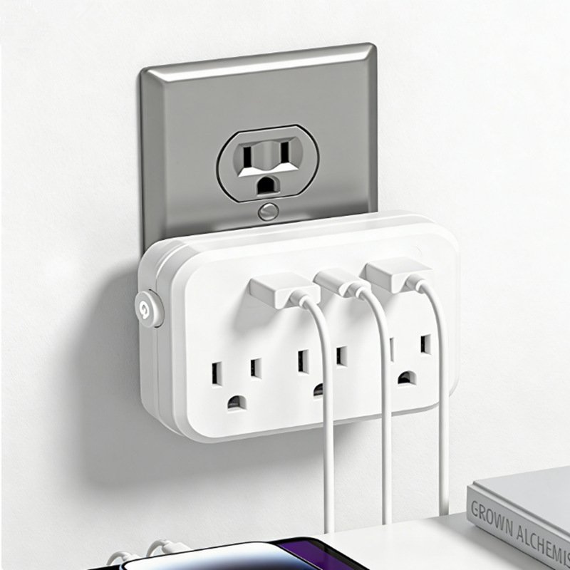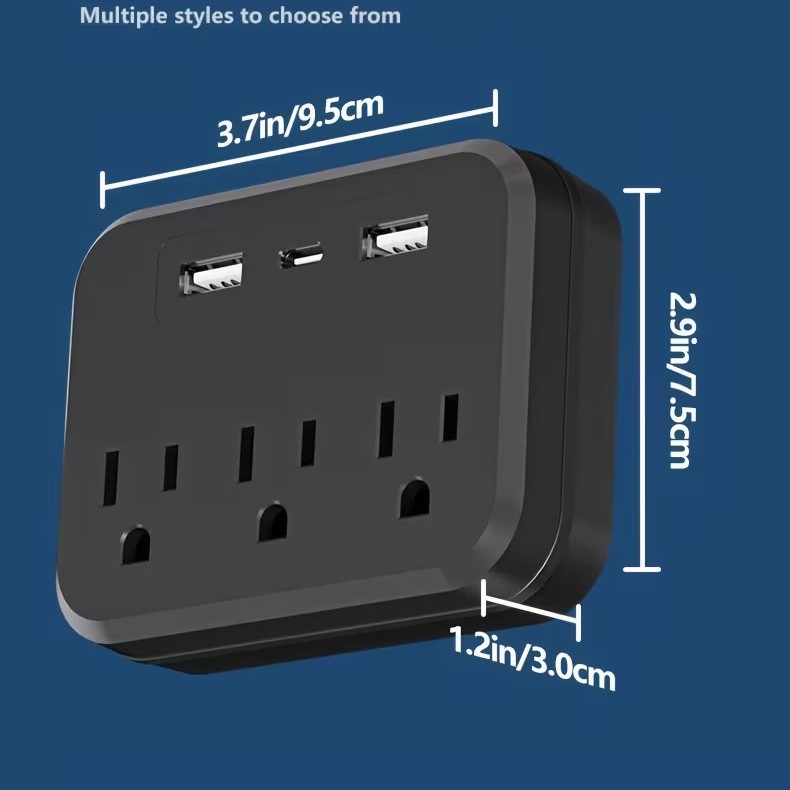 跨境TEMU爆款插座3位插孔带USB充电插排美标一转三转换器墙壁排插