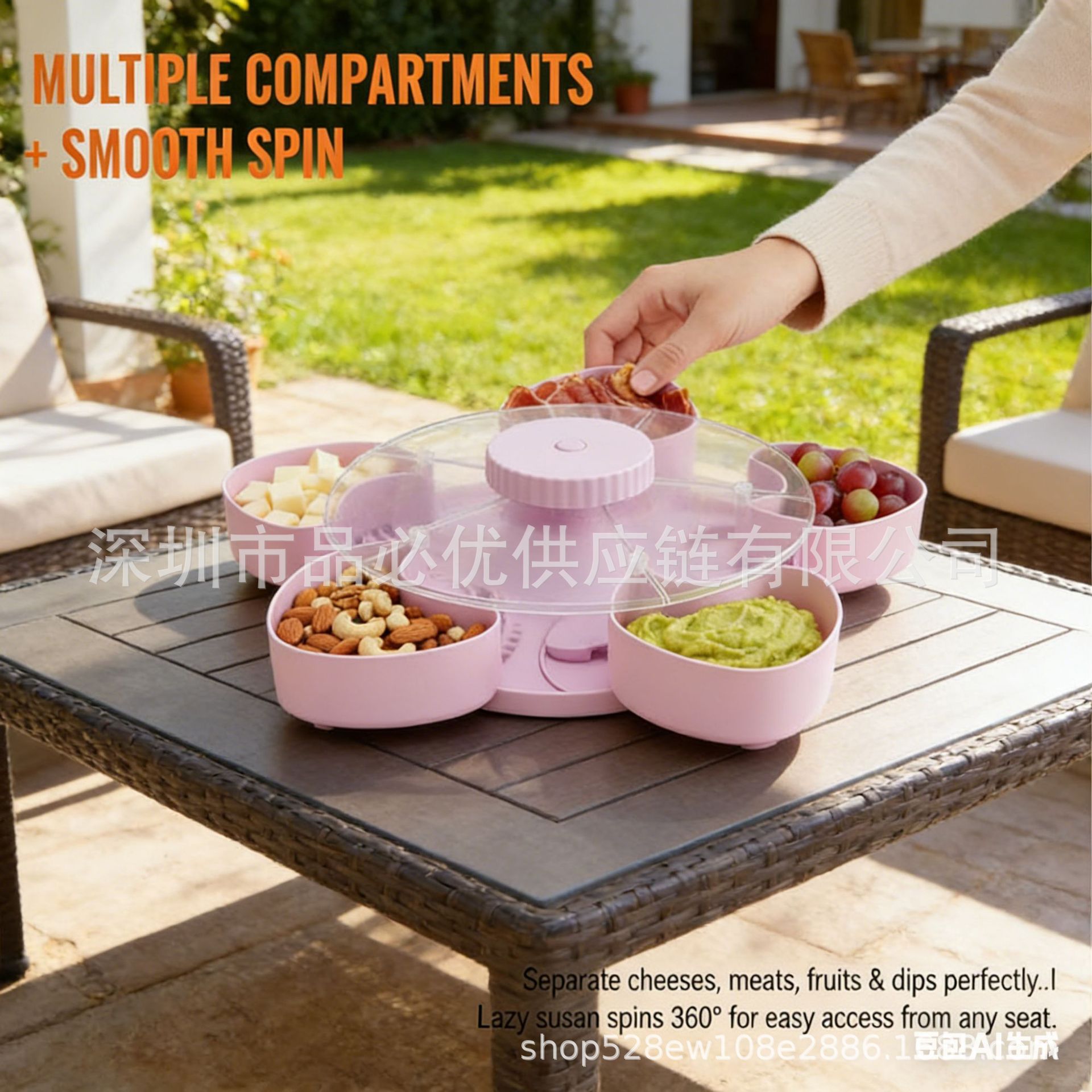 跨境新品Divided Serving Tray That Spins多层旋转的分体式托盘