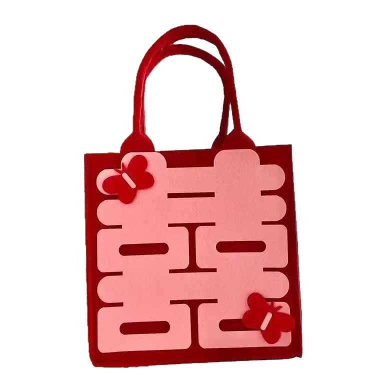 中式婚庆喜字毛毡手提袋结婚伴手礼袋囍字礼品袋喜字毛毡手提包