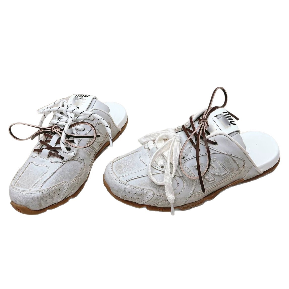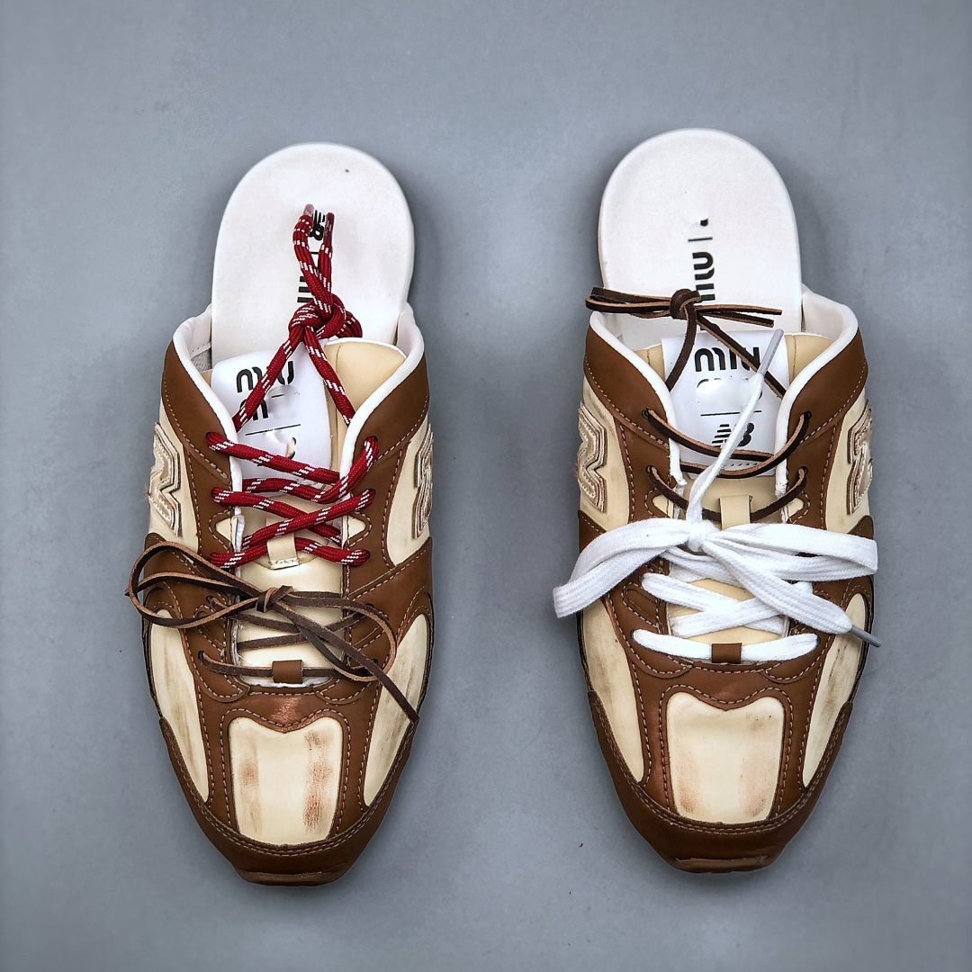 纯原NB530xMiu包头拖鞋女皮面平跟套脚单鞋复古老钱风小红书潮鞋