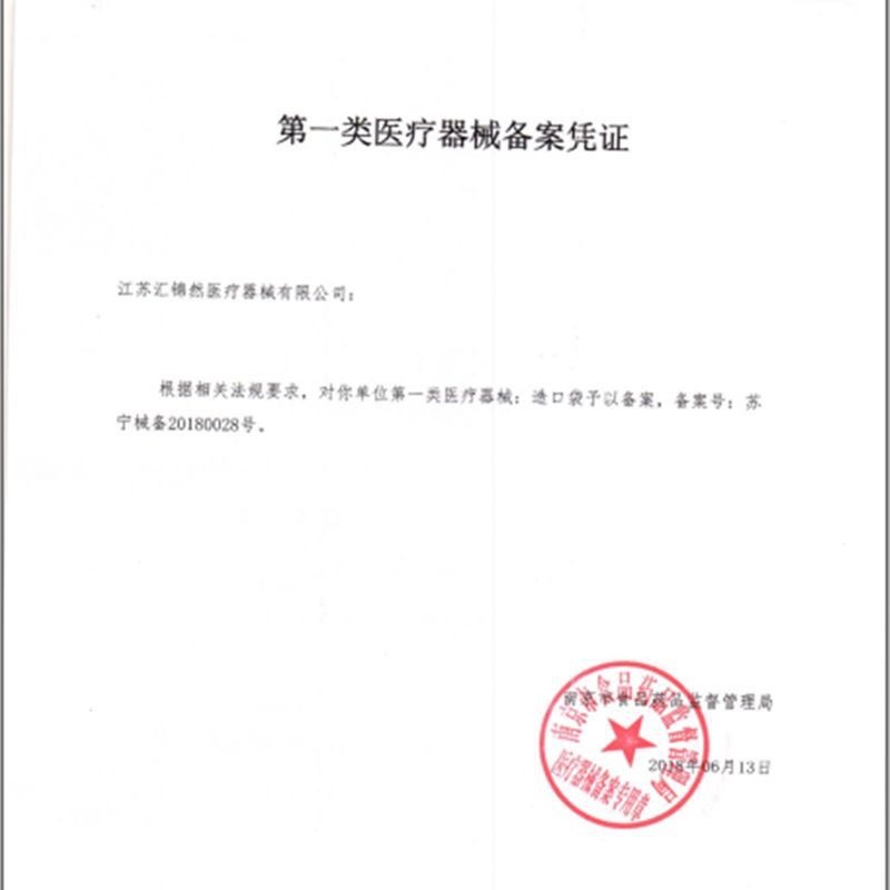 | 药(械)准字 | 苏宁械备20150029号 | 生产企业 | 江苏汇锦然医疗器械有限公司 |