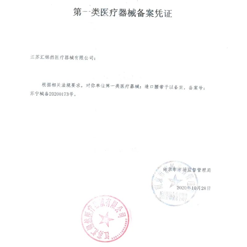 | 药(械)准字 | 苏宁械备20200173号 | 生产企业 | 汇锦然 |