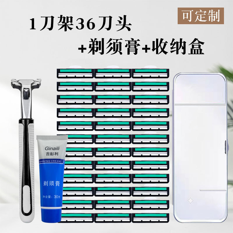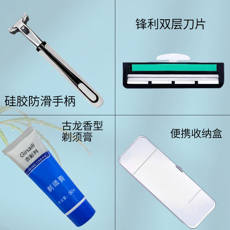 跨境2层剃须刀手动套装双层刀片带刀架男士老式刮胡刀刮脸刀现货