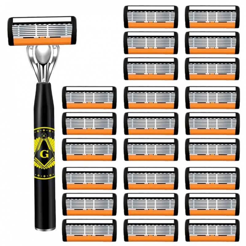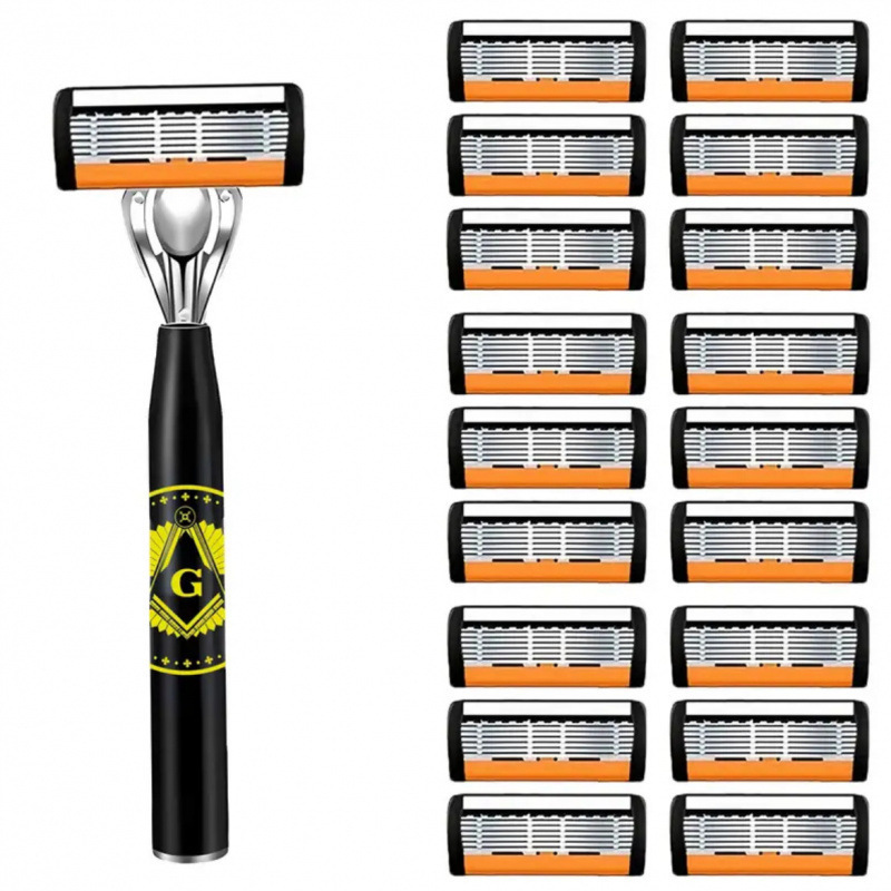 橘色六层刀头手动剃须刀6层刀片刮胡刀大G手动刮胡刀片通用7层