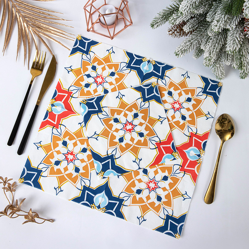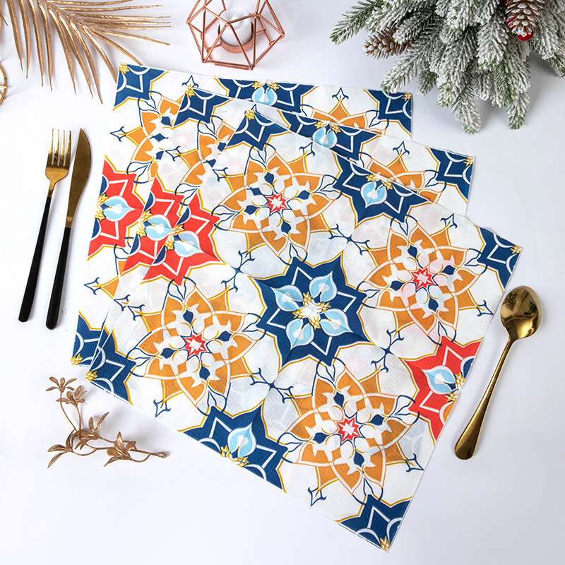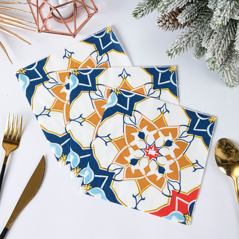 摩洛哥几何花砖印花一次性餐巾纸跨境异域风派对餐桌装饰纸巾LOGO