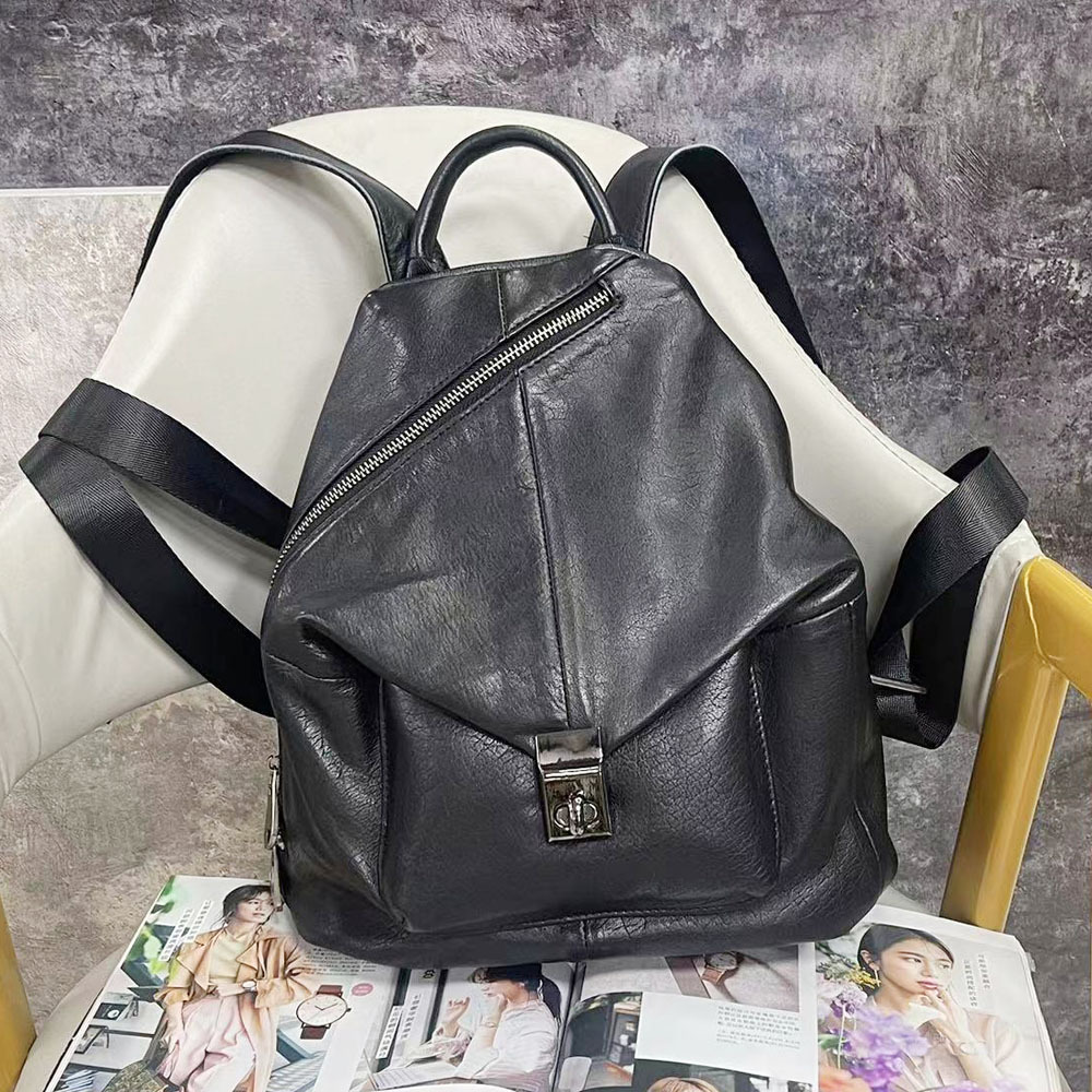 长期现货真皮背包女黑色头层牛皮女士双肩包潮流时尚百搭软皮女包