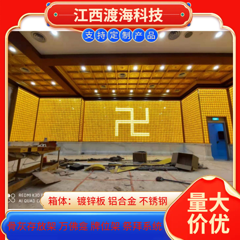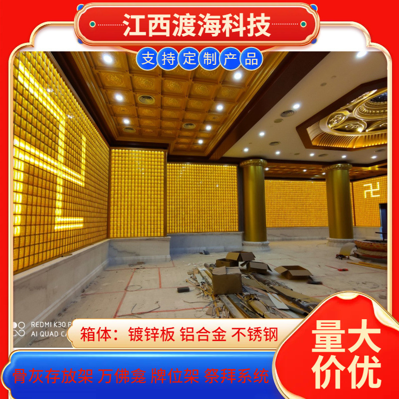 主营产品:骨灰存放架,骨灰盒寄存架,福寿架,万佛龛,牌位架,殡仪馆祭拜系统,寺院智能化管理系统、龙骨吊顶、智能骨灰寄存架