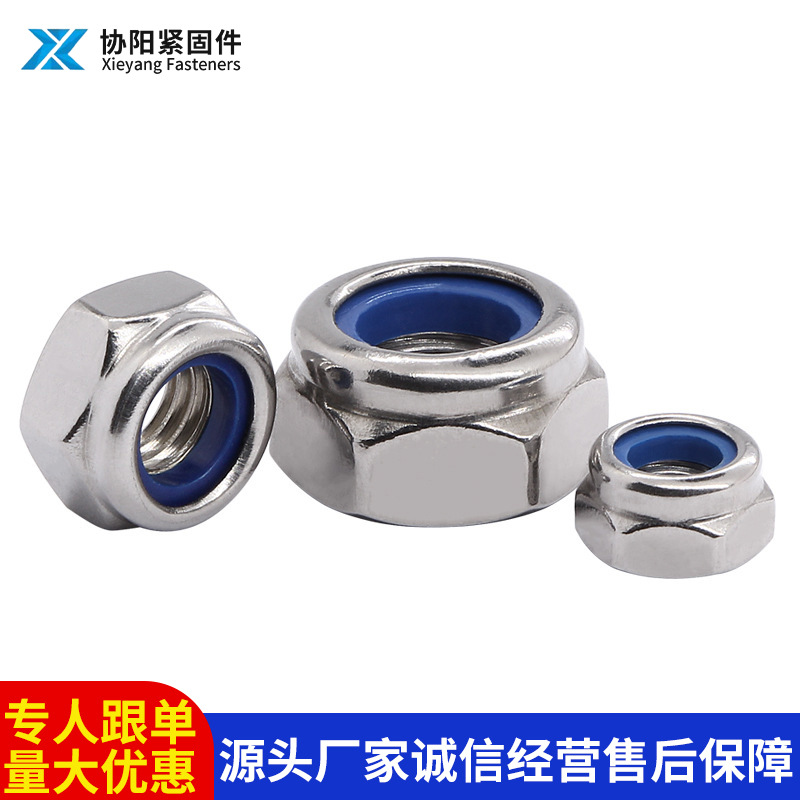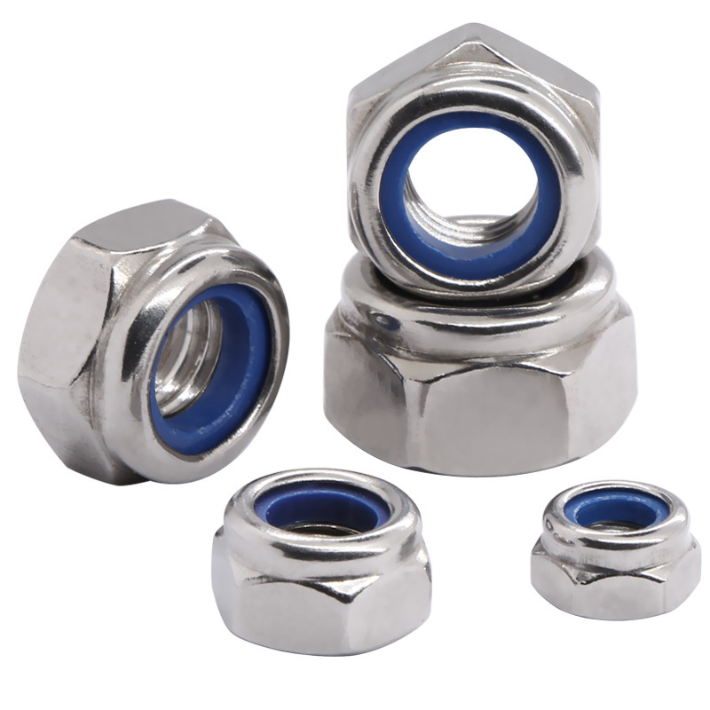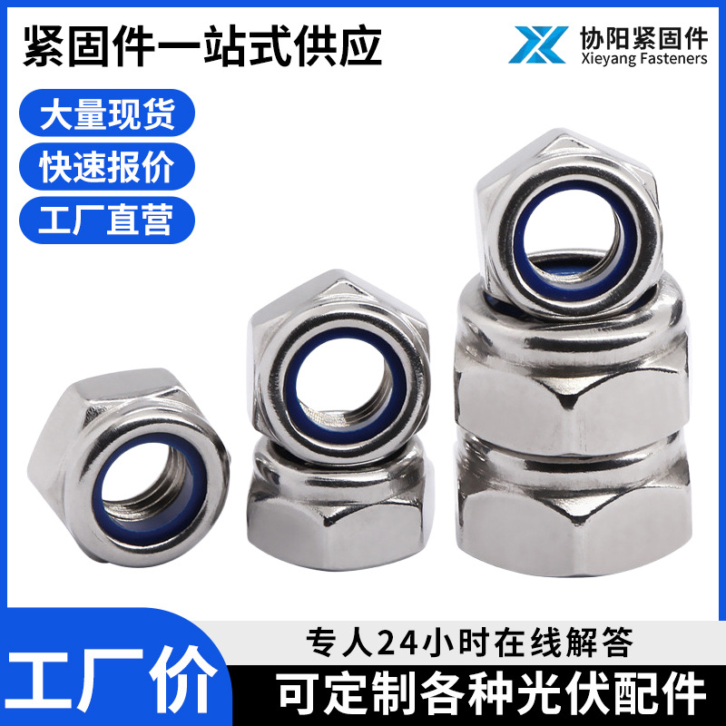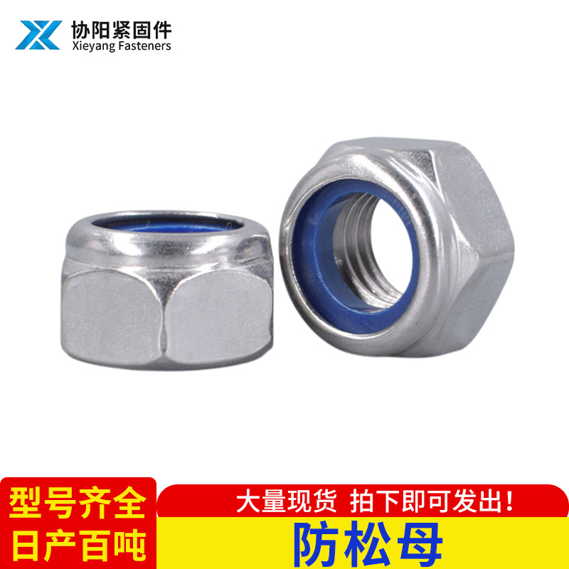 304不锈钢防松螺母防滑螺纹锁紧螺母尼龙自锁螺母外六角防松螺母