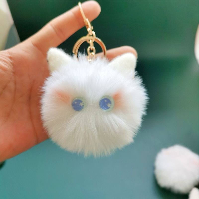 钥匙扣毛绒挂件腮红猫猫小毛球挂件少女心书包可爱卡通小礼物学生