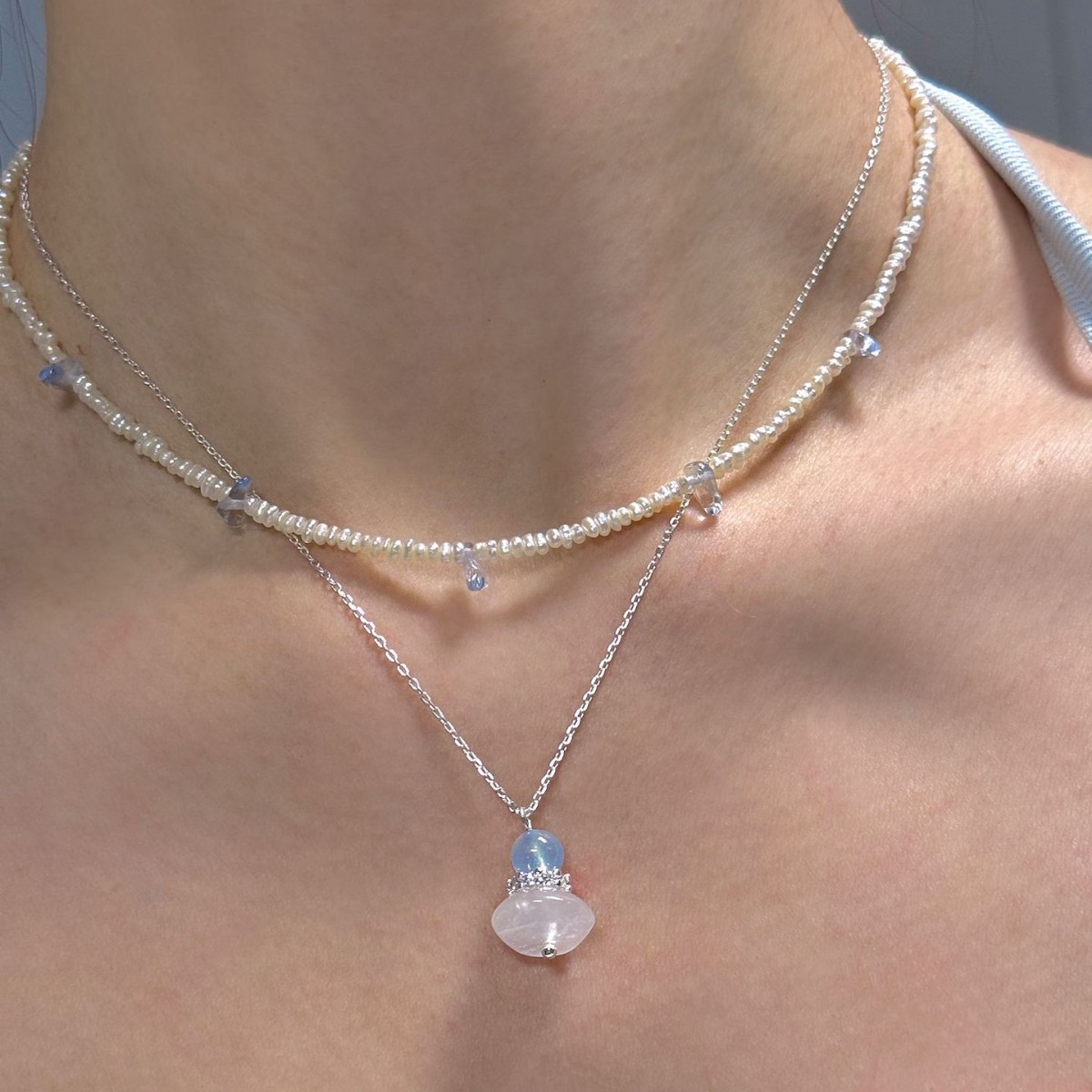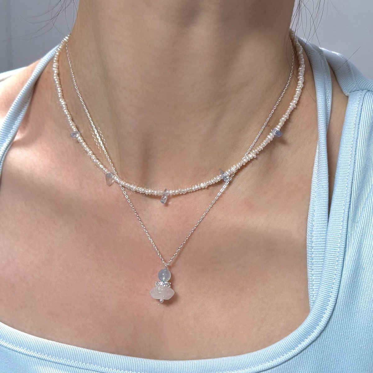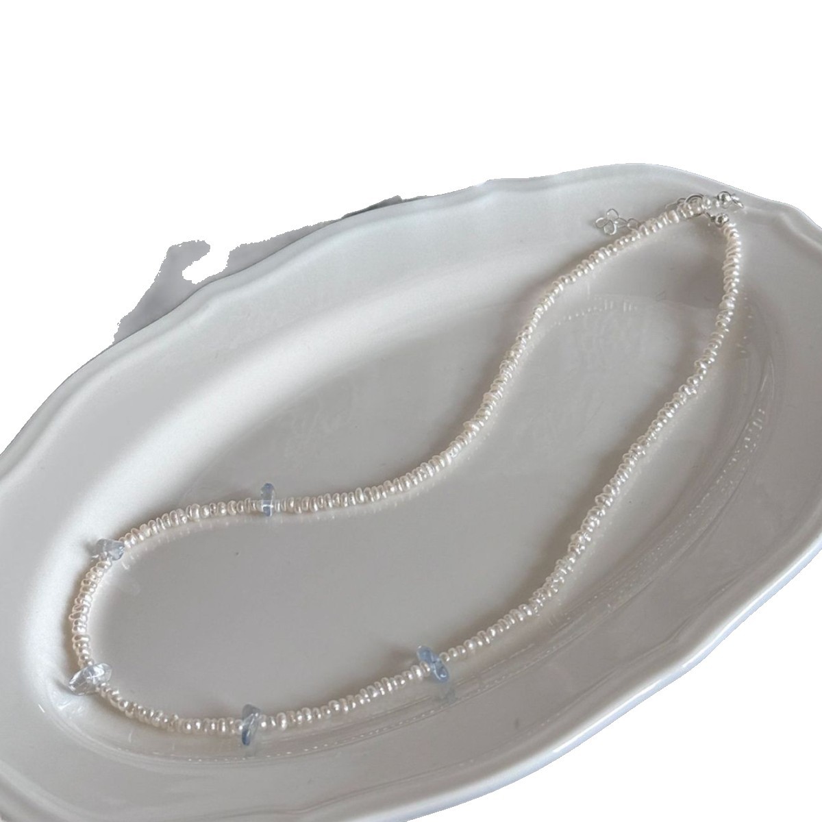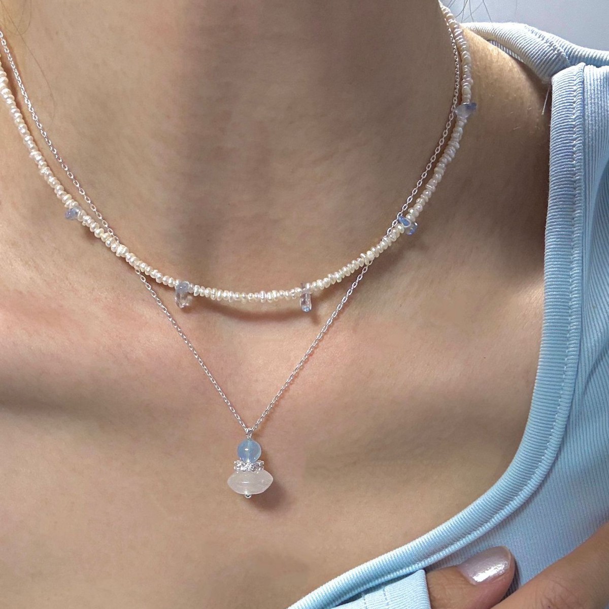 春夏季甜美ins风天然海蓝宝碎石mini天然珍珠锁骨链简约叠戴百搭