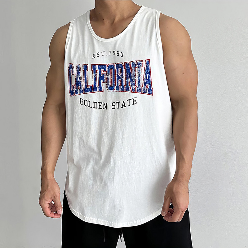 美式印花重磅坎肩背心男士2025夏季ins潮牌运动健身无袖T恤汗衫