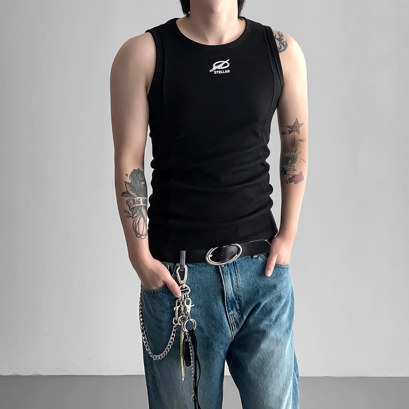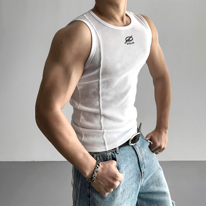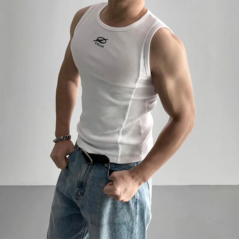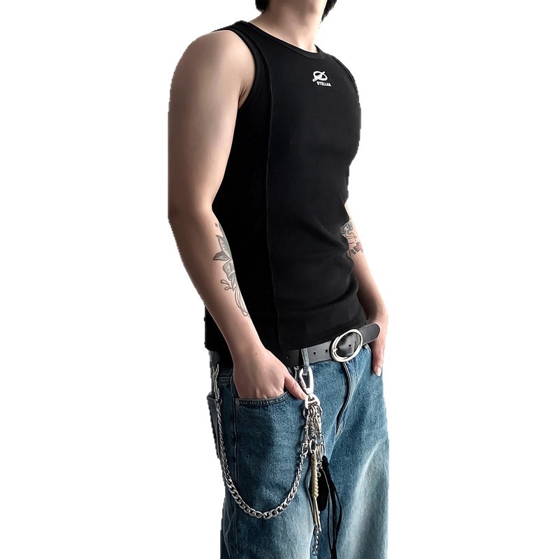 白色无袖背心男夏外穿2025新款宽松坎肩透气美式粗螺纹内搭打底衫