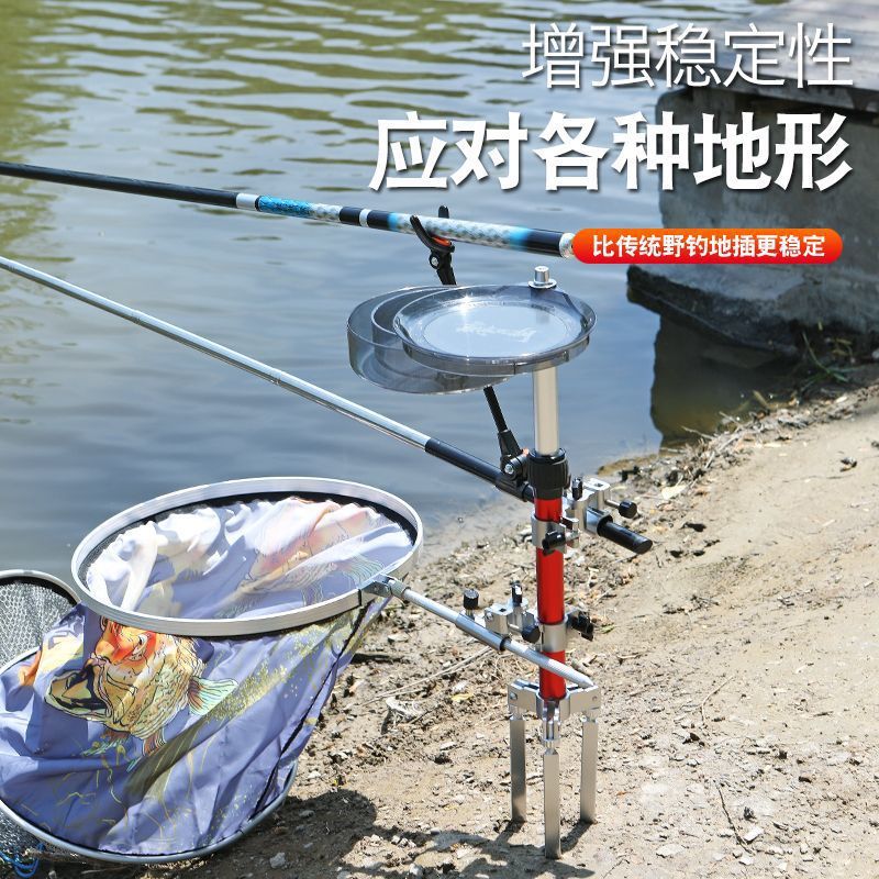 野钓三合一地插支架全地形炮台支架带拉饵盘炮台架渔户架野钓支架