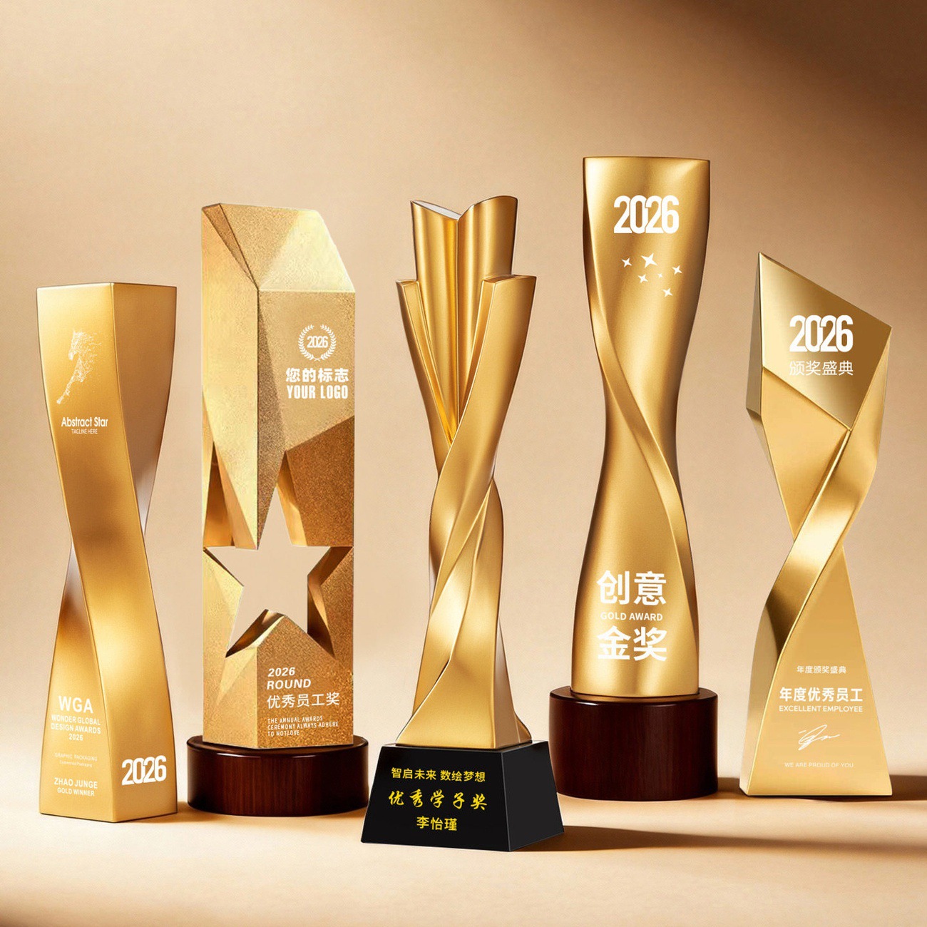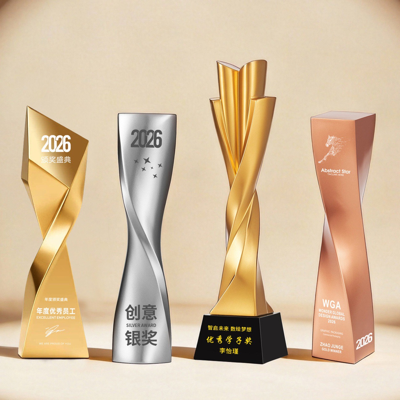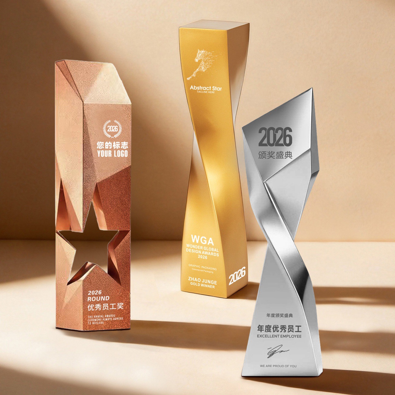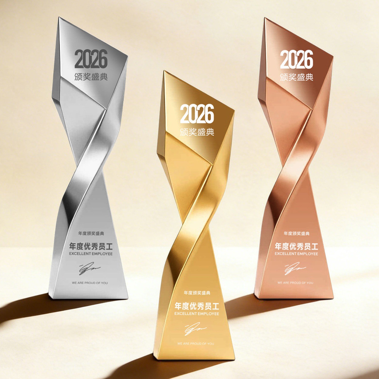 2026新款树脂奖杯创意不规则金银铜奖杯企业优秀员工年会爆款