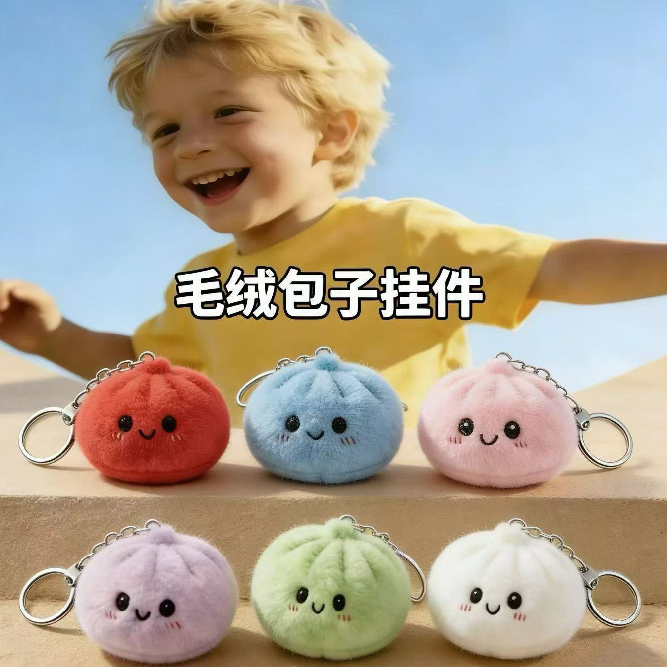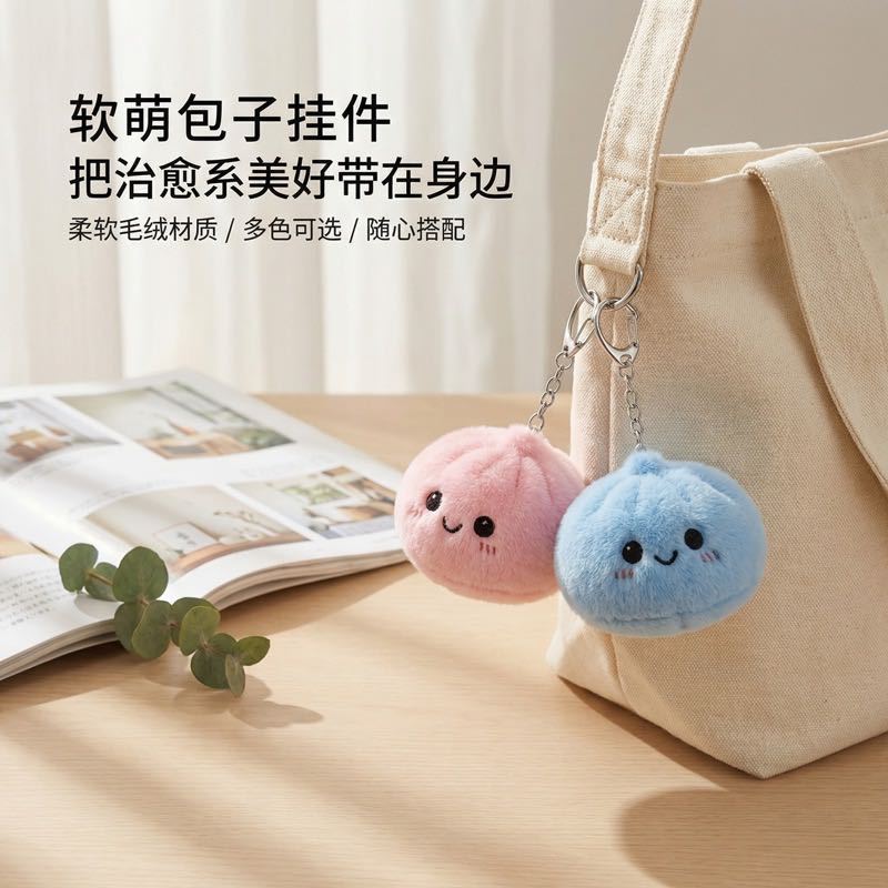 可爱包子造型钥匙扣热销解压挂件 创意卡通包包挂饰小礼物毛绒