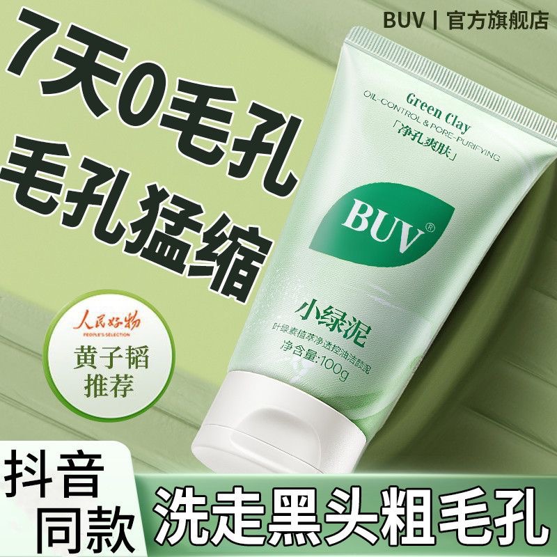 BUV绿泥洗面奶叶绿素控油细腻毛孔去黑头男女通用清爽洁面祛痘2.0
